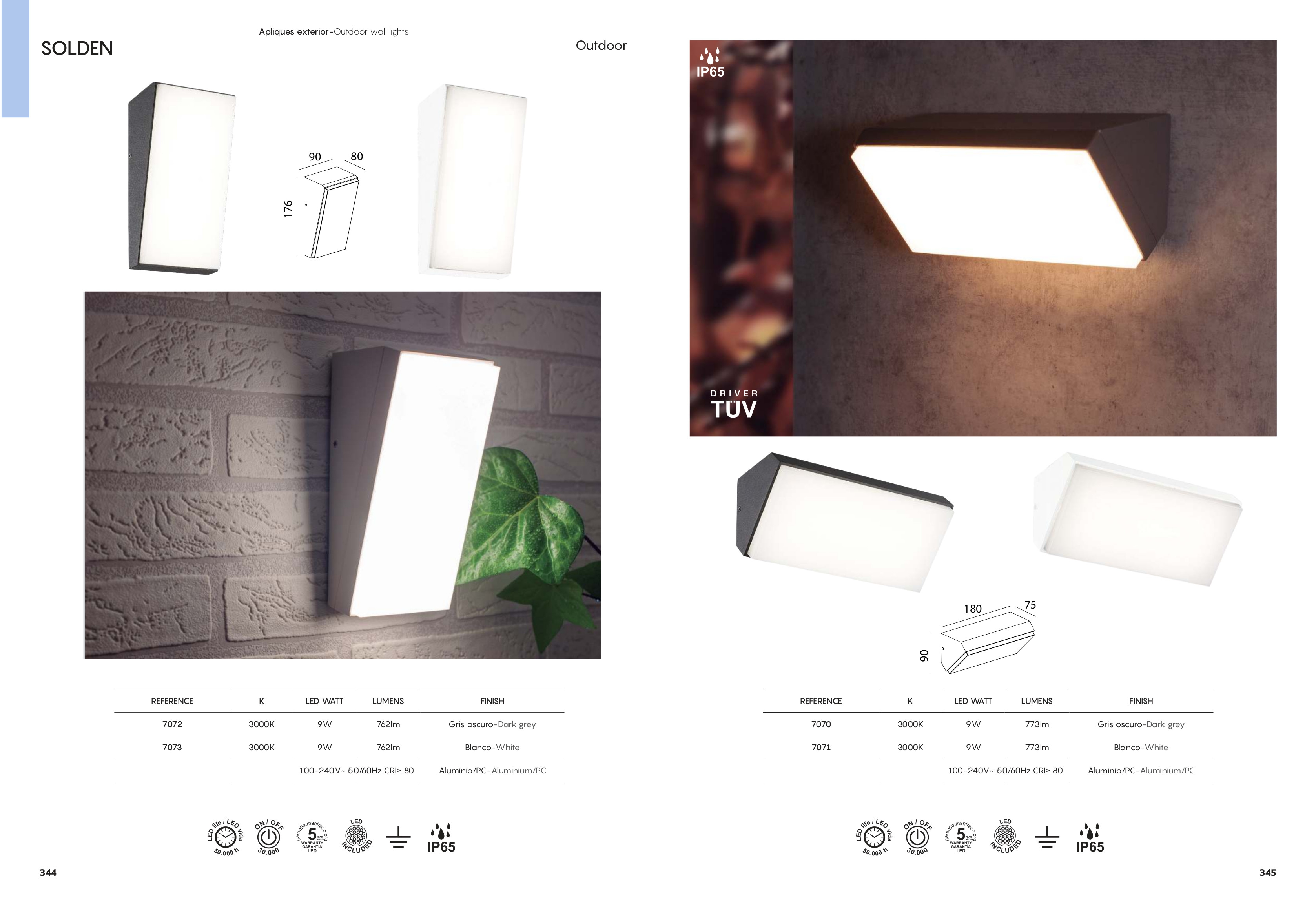 Осветителното тяло 7073 White 9W 3000K 762lm SOLDEN ще осигури комфорт и естетика във всяко помещение, в което се постави. Цялостната визия и дизайн на лампата и вложените в изработката й материали, като алуминий в пясъчно бял цвят, полимер в бяло, ще допринесат за един неповторим стил. Благодарение на дългогодишния опит, качествените материали и строгия контрол на качеството на изработка на производителя Mantra (Испания), 7073 White 9W 3000K 762lm SOLDEN е на високо европейско ниво.
