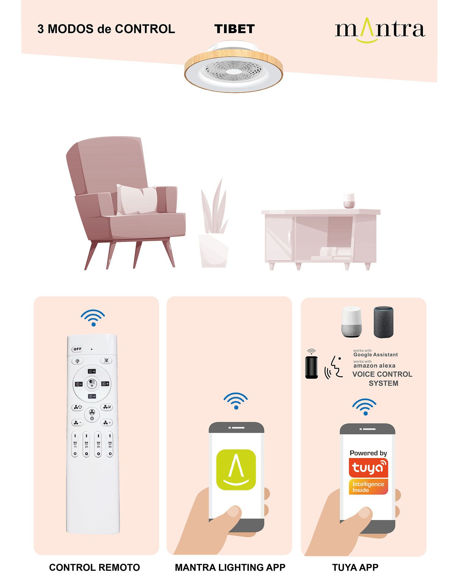 Осветителното тяло 7127 Black/ImitationWood 70W 2700K-5000K TIBET ще осигури комфорт и естетика във всяко помещение, в което се постави. Цялостната визия и дизайн на лампата и вложените в изработката й материали, като метал в черен цвят, метал в цвят злато, полимер (ABS) в бяло, интегриран вентилатор с DC мотор 35W, дистанционно, гласов контрол, приложение за смартфон , ще допринесат за един неповторим стил. Благодарение на дългогодишния опит, качествените материали и строгия контрол на качеството на изработка на производителя Mantra (Испания), 7127 Black/ImitationWood 70W 2700K-5000K TIBET е на високо европейско ниво.