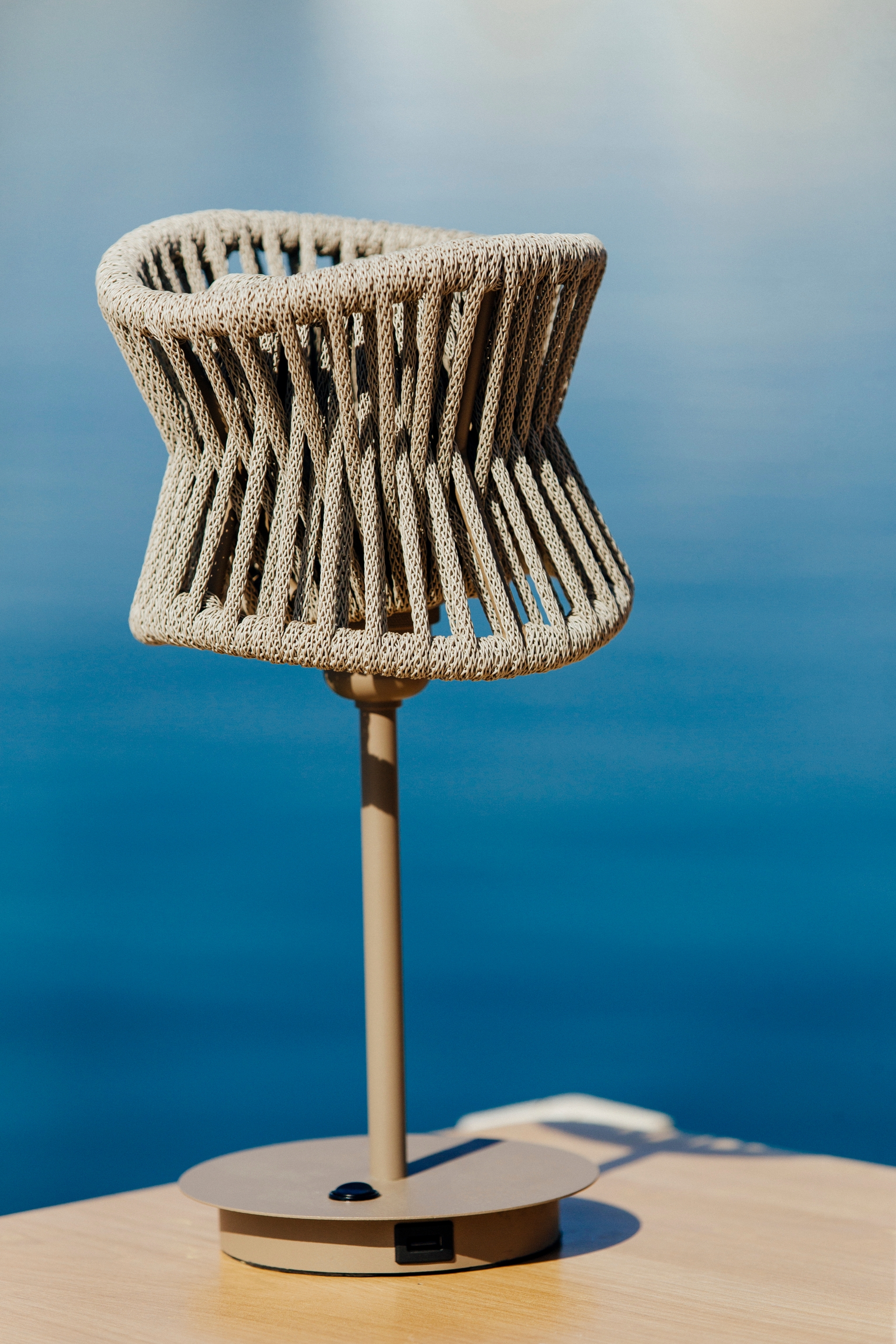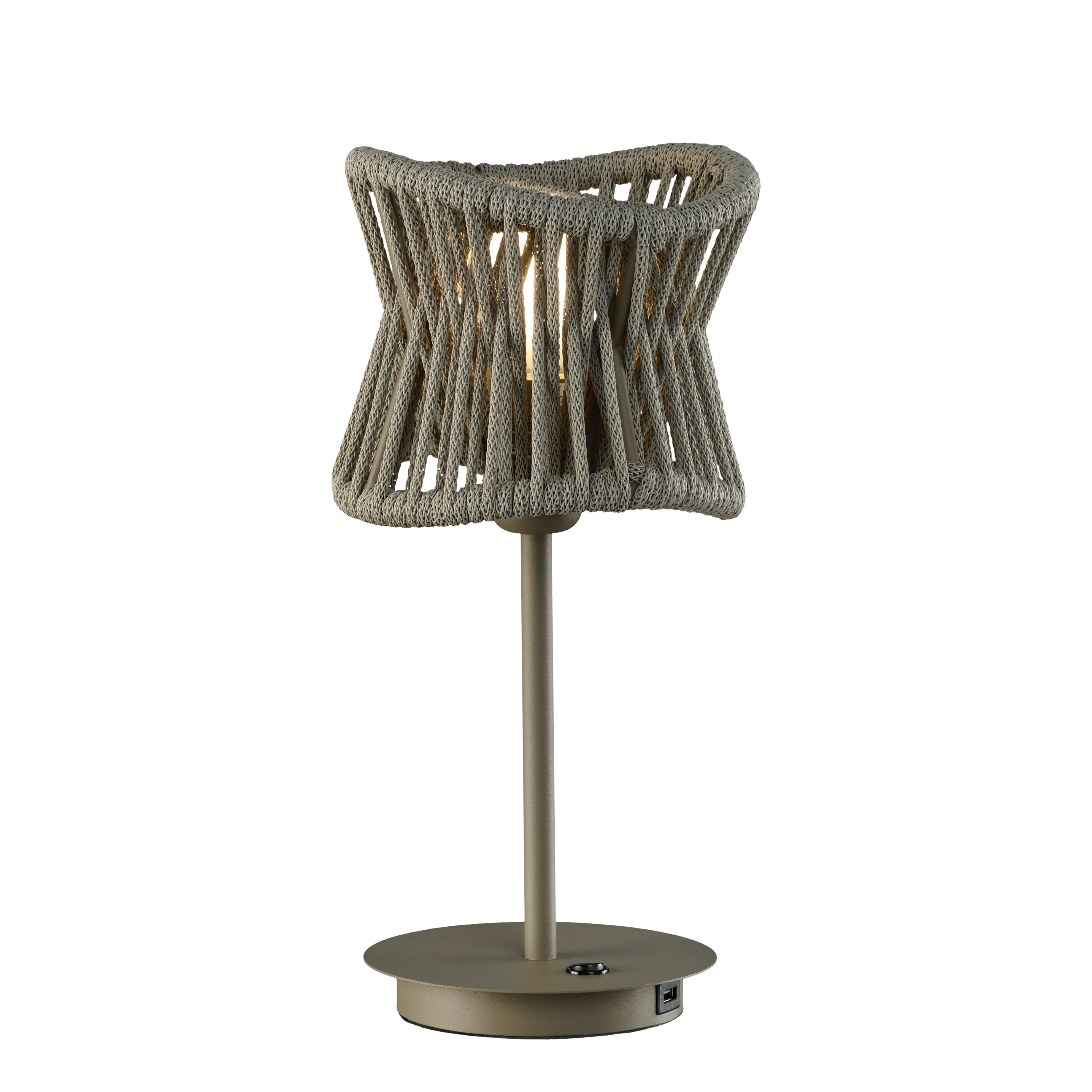 Стилът и естетиката на обстановката ще бъдат облагородени, както от цялостната визия и дизайн на осветителното тяло, така и от вложените в изработката на лампата висококачествени материали, като: алуминий в тъмнокафяв цвят, синтетичен текстил, USB изход, ключ ON/OFF.