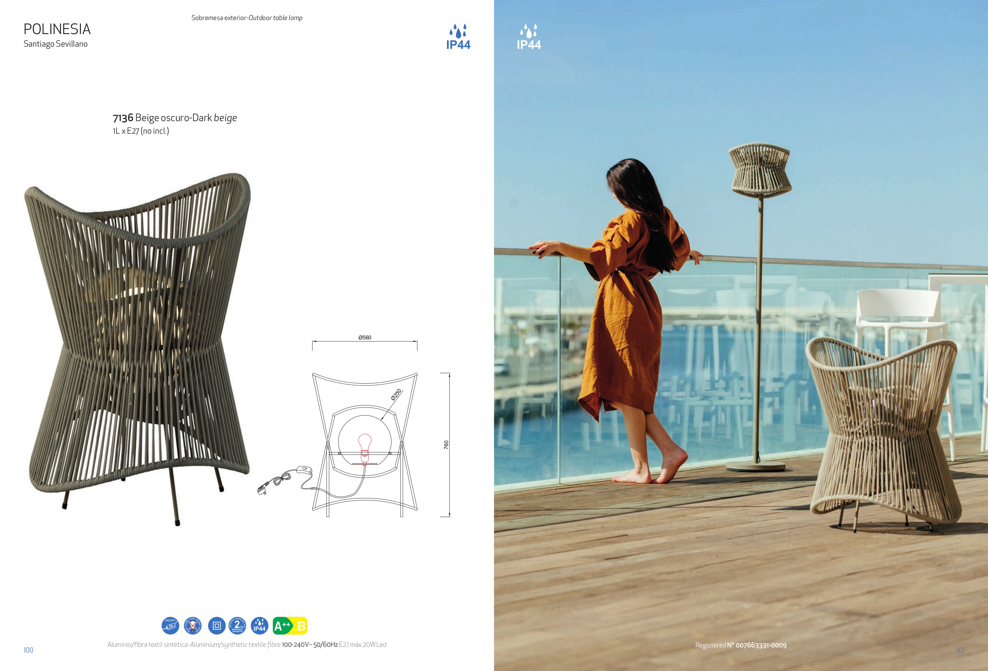 Осветителното тяло ^7136 IP44 1xE27 (Incl.) Beige Oscu ще осигури комфорт и естетика във всяко помещение, в което се постави. Цялостната визия и дизайн на лампата и вложените в изработката й материали, като алуминий в тъмнокафяв цвят, синтетичен текстил, ключ ON/OFF, ще допринесат за един неповторим стил. Благодарение на дългогодишния опит, качествените материали и строгия контрол на качеството на изработка на производителя Mantra (Испания), ^7136 IP44 1xE27 (Incl.) Beige Oscu е на високо европейско ниво.
