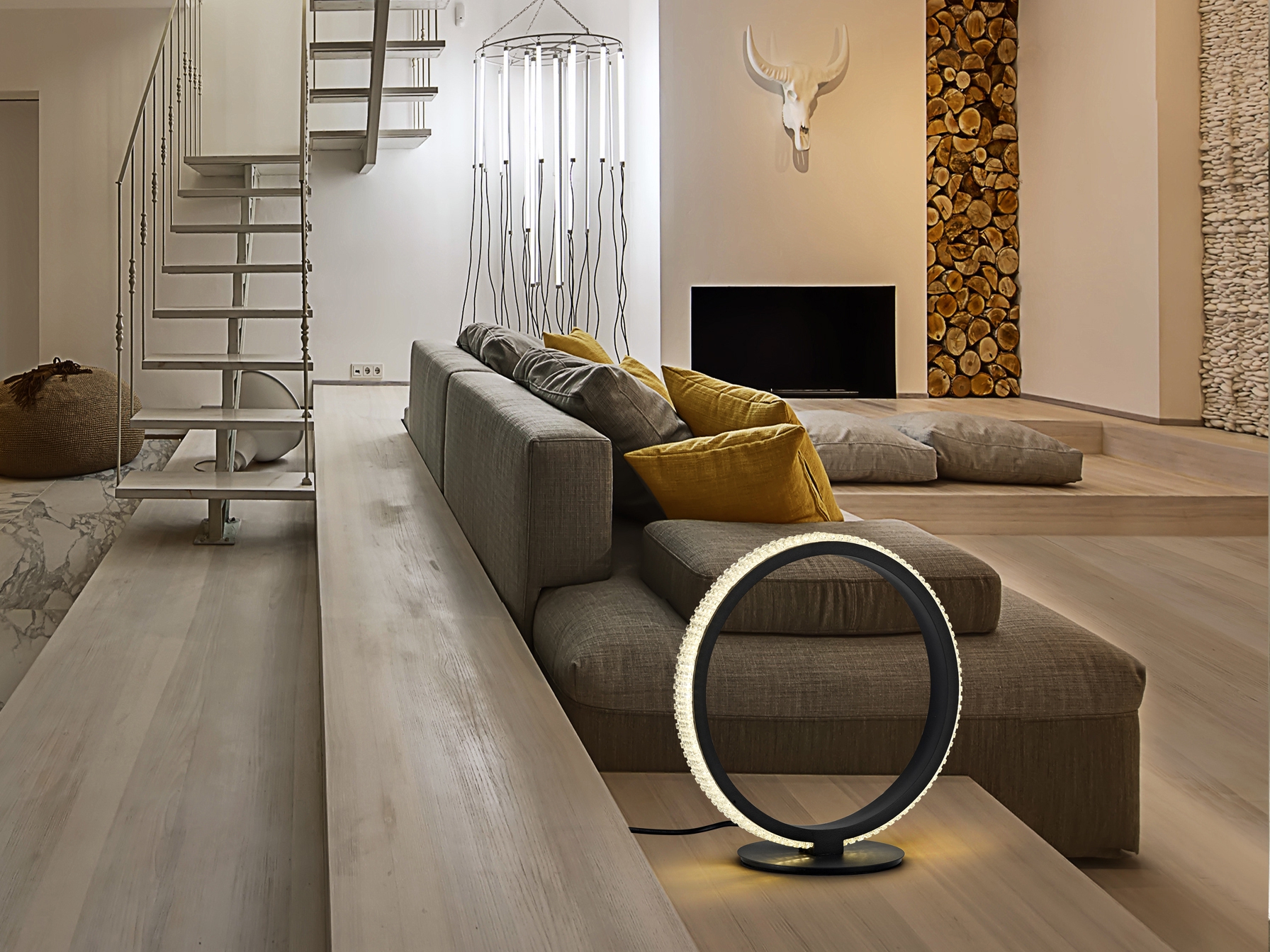Осветителното тяло 717724 RING TABLE LAMP, BLACK представлява лед настолна лампа в съвременен стил. 717724 RING TABLE LAMP, BLACK е от категорията и е подходящо за осветяване на различни помещения и пространства като: всекидневна / хол, спалня, трапезария, офис.