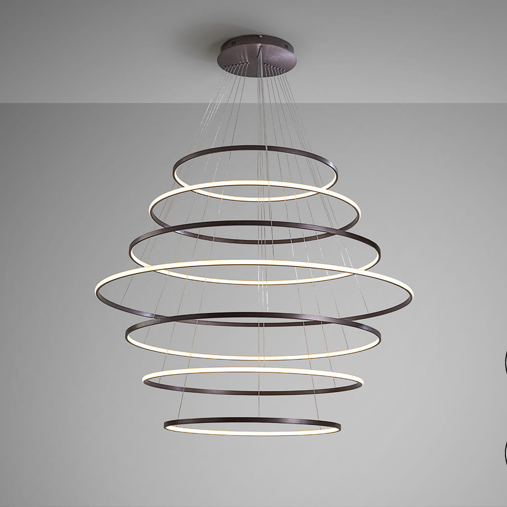 Осветителното тяло 718059 ODESSA - LAMP 7 RINGS D150 - BRONZE представлява лед полилей в съвременен стил. 718059 ODESSA - LAMP 7 RINGS D150 - BRONZE е от категорията и е подходящо за осветяване на различни помещения и пространства като: всекидневна / хол, офис.