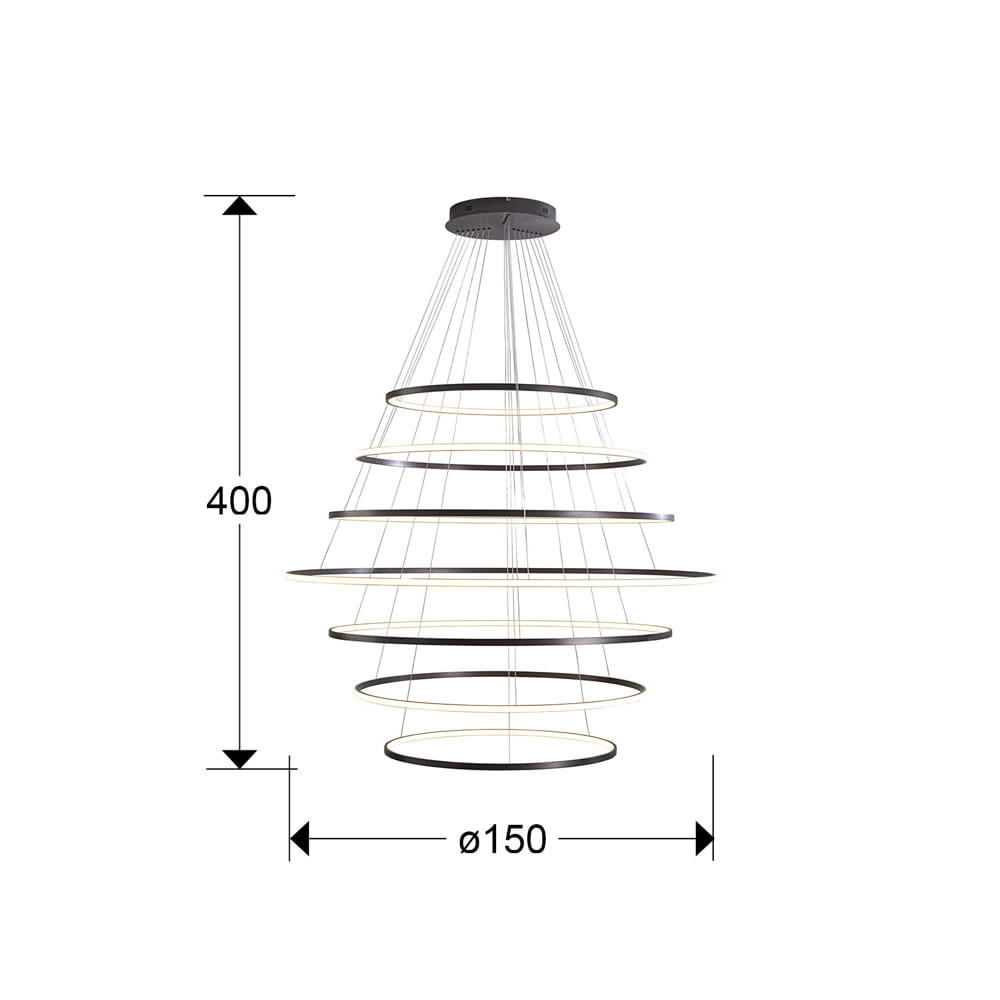 Лед полилей 718059 ODESSA - LAMP 7 RINGS D150 - BRONZE ще осигури комфорт и естетика във всяко помещение, в което се постави. Цялостната визия и дизайн на led лампата и вложените в изработката й материали, като седем пръстена от алуминий с тъмно бронзово покритие, силиконов разсейвате на светлината, комплекта вклчва дистанционно управление, ще допринесат за един неповторим стил. Благодарение на дългогодишния опит в производството на лед осветление, качествените материали и строгия контрол на качеството на изработка на производителя Schuller (Испания), 718059 ODESSA - LAMP 7 RINGS D150 - BRONZE е на високо европейско ниво.