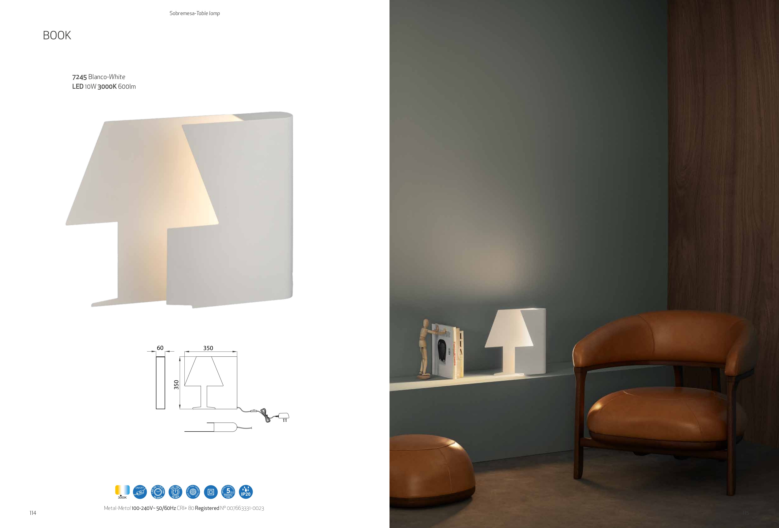 Лед настолна лампа ^7245 Sobremesa LED 10W/3000K Blanco ще осигури комфорт и естетика във всяко помещение, в което се постави. Цялостната визия и дизайн на led лампата и вложените в изработката й материали, като метал в бял цвят, ключ ON/OFF, ще допринесат за един неповторим стил. Благодарение на дългогодишния опит в производството на лед осветление, качествените материали и строгия контрол на качеството на изработка на производителя Mantra (Испания), ^7245 Sobremesa LED 10W/3000K Blanco е на високо европейско ниво.