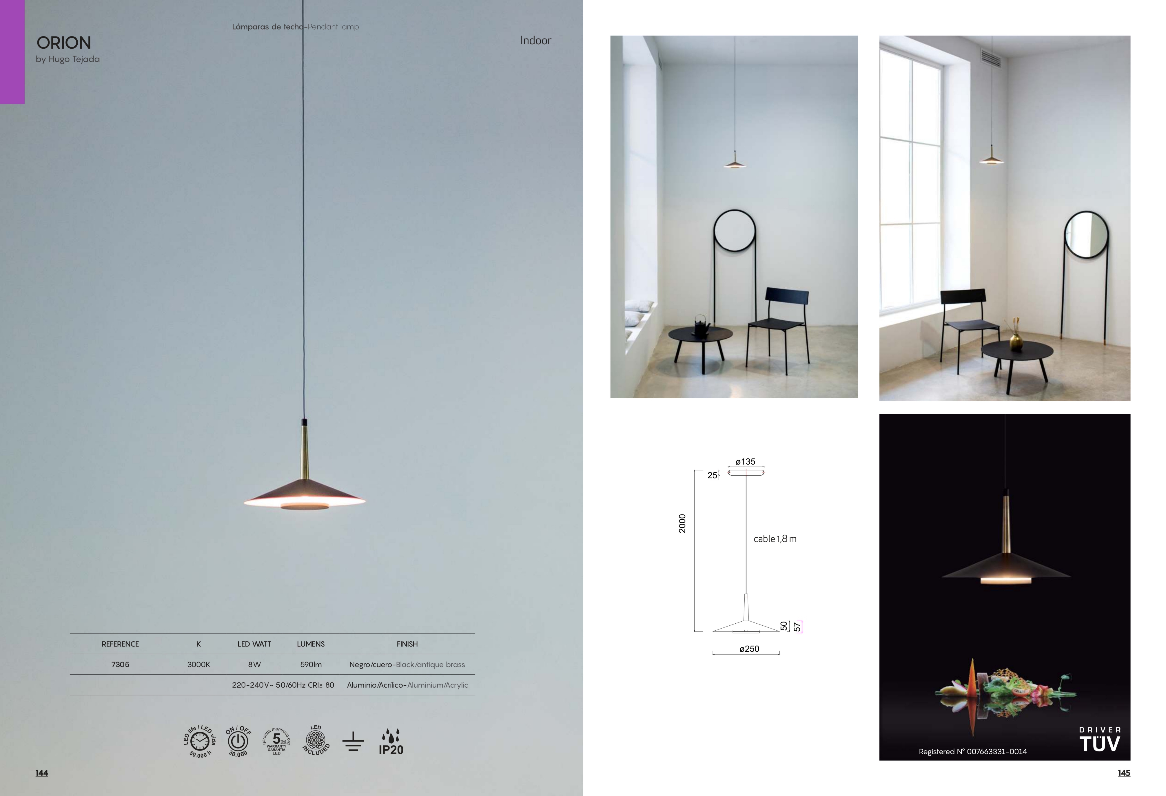 Ел. мощност 1 х 16 W Размери Ф25см x 6.7см x 2х3.5м Производител Mantra, Испания