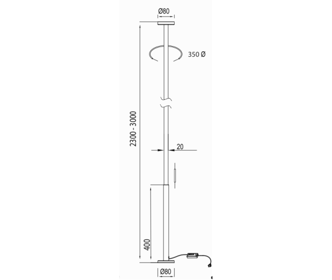 Ел. мощност 1 x 40 W Размери 260-300см x Ф8см x Ф2м Производител Mantra, Испания