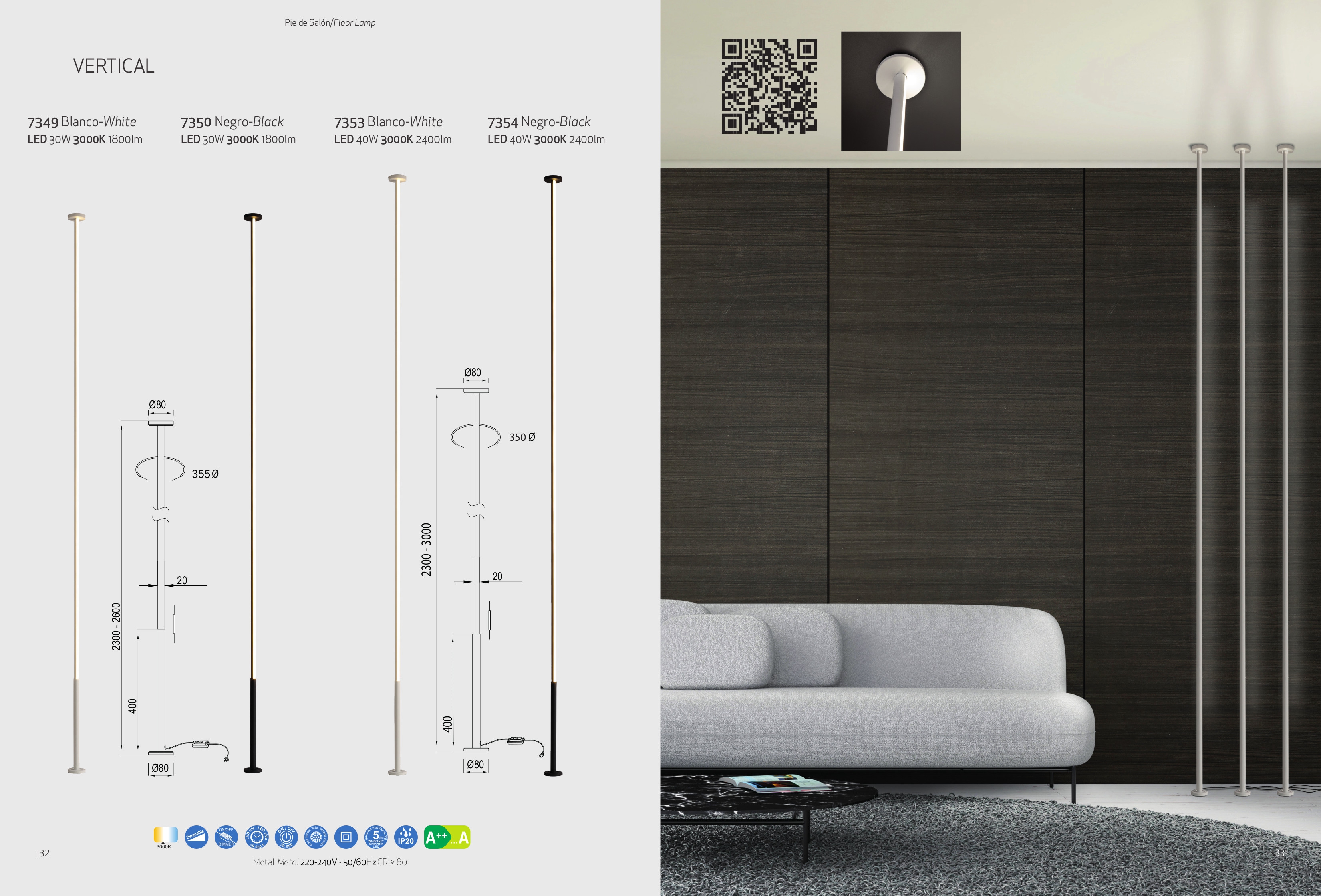 Осветителното тяло 7353 White 40W 3000K 2400lm VERTICAL представлява лед лампион / правостояща лампа в съвременен, дизайнерски стил. 7353 White 40W 3000K 2400lm VERTICAL е от категорията и е подходящо за осветяване на различни помещения и пространства като: всекидневна / хол, спалня, трапезария, офис.