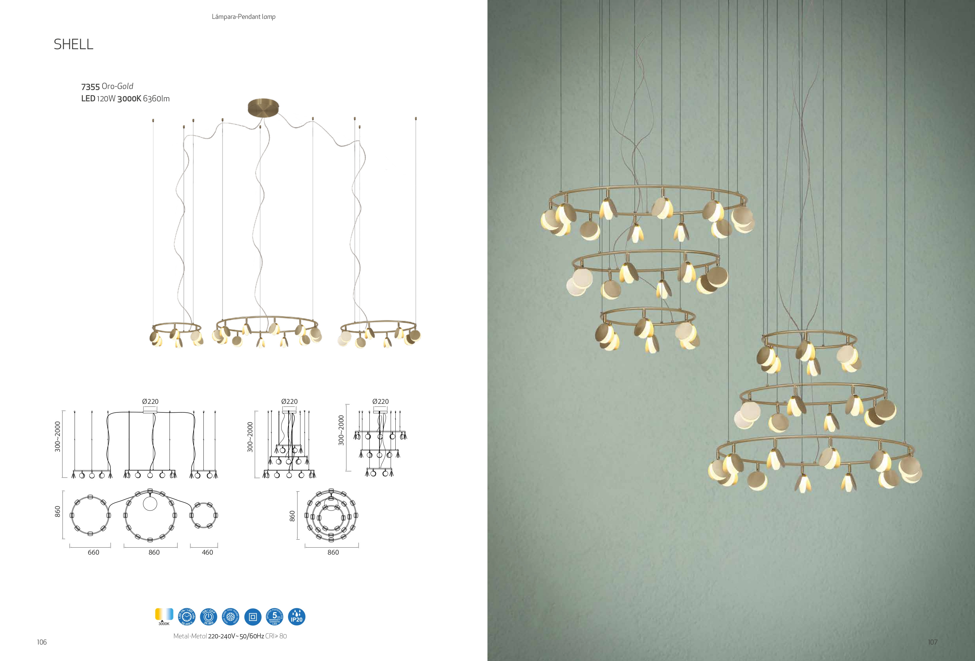 Осветителното тяло 7355 L?mpara LED представлява полилей в съвременен, дизайнерски стил. 7355 L?mpara LED е от категорията осветителни тела и е подходящо за осветяване на различни помещения и пространства като: всекидневна / хол, спалня, трапезария, офис.