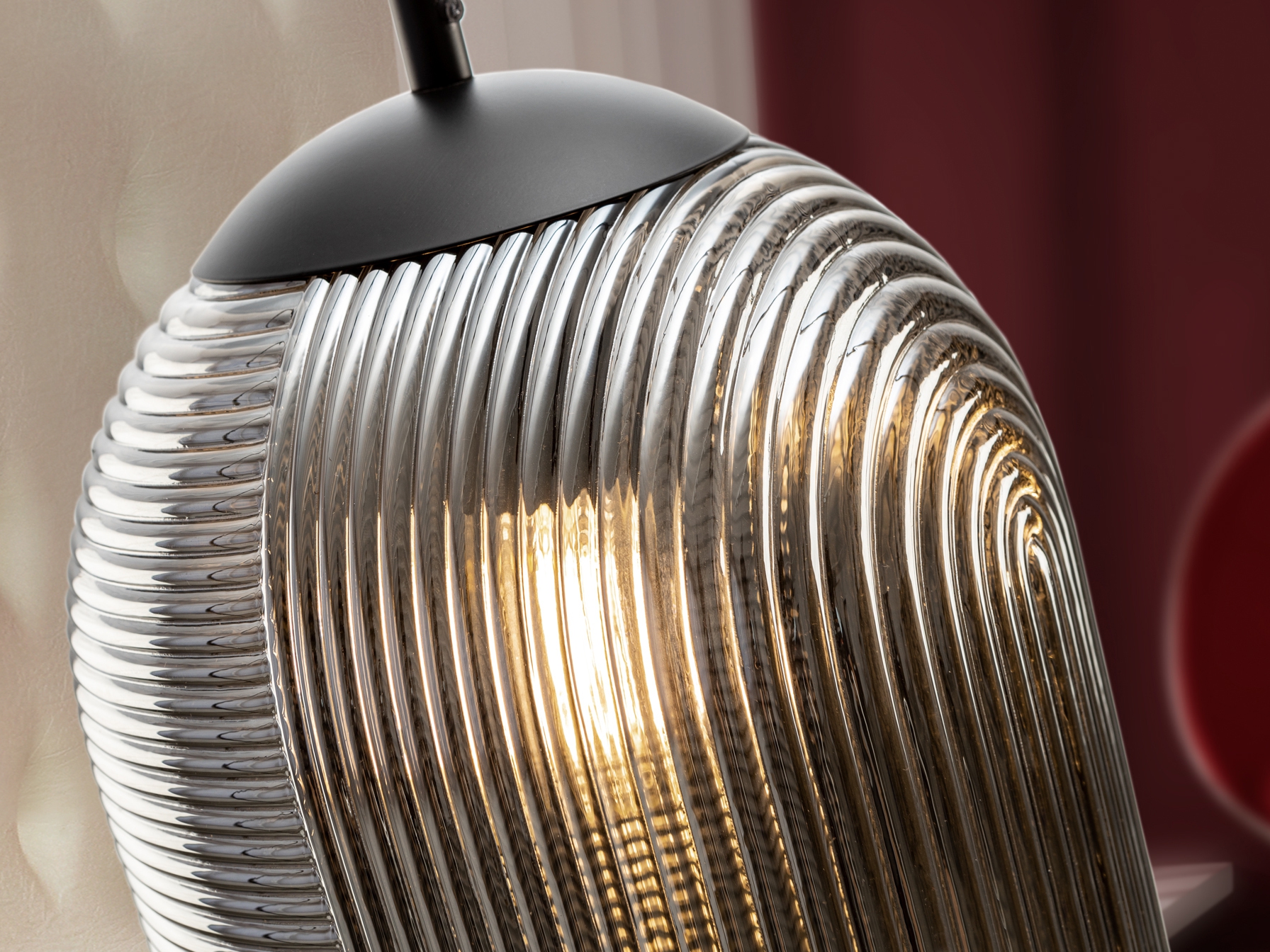 метал с хромирано покритие, абажур от релефно стъкло в блестяща димносива тоналност