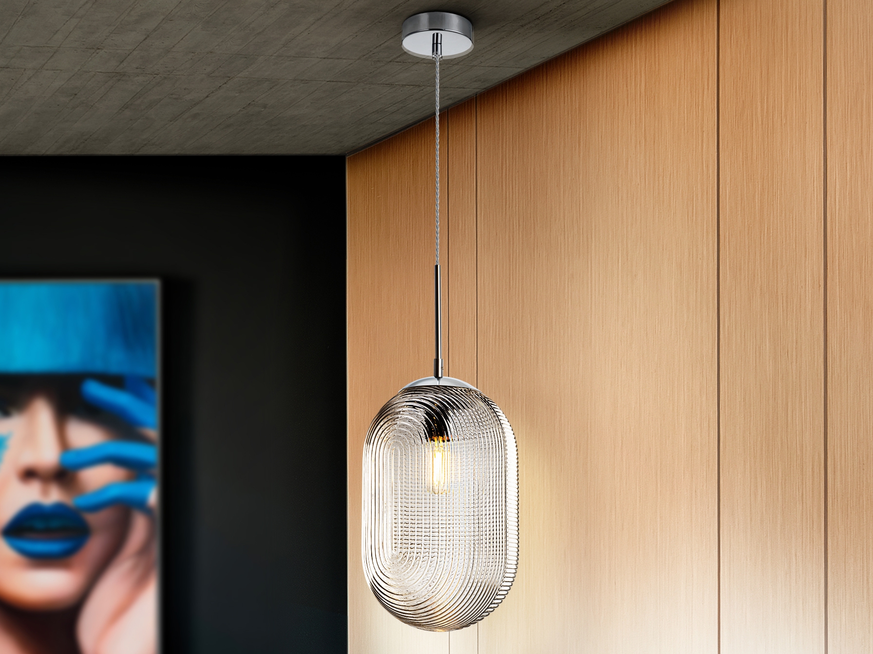 метал с хромирано покритие, абажур от релефно прозрачно стъкло