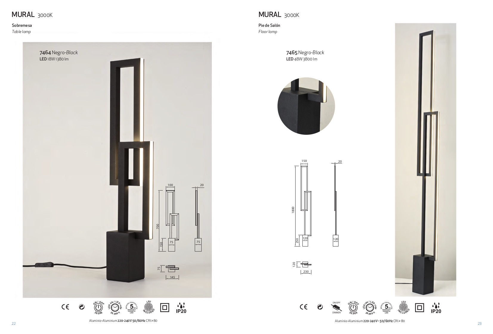 Осветителното тяло 7465 48W/3000K Black Floor Lamp ще осигури комфорт и естетика във всяко помещение, в което се постави. Цялостната визия и дизайн на лампата и вложените в изработката й материали, като алуминий в черен цвят, дифузер от полимер в бяло, ще допринесат за един неповторим стил. Благодарение на дългогодишния опит, качествените материали и строгия контрол на качеството на изработка на производителя Mantra (Испания), 7465 48W/3000K Black Floor Lamp е на високо европейско ниво.
