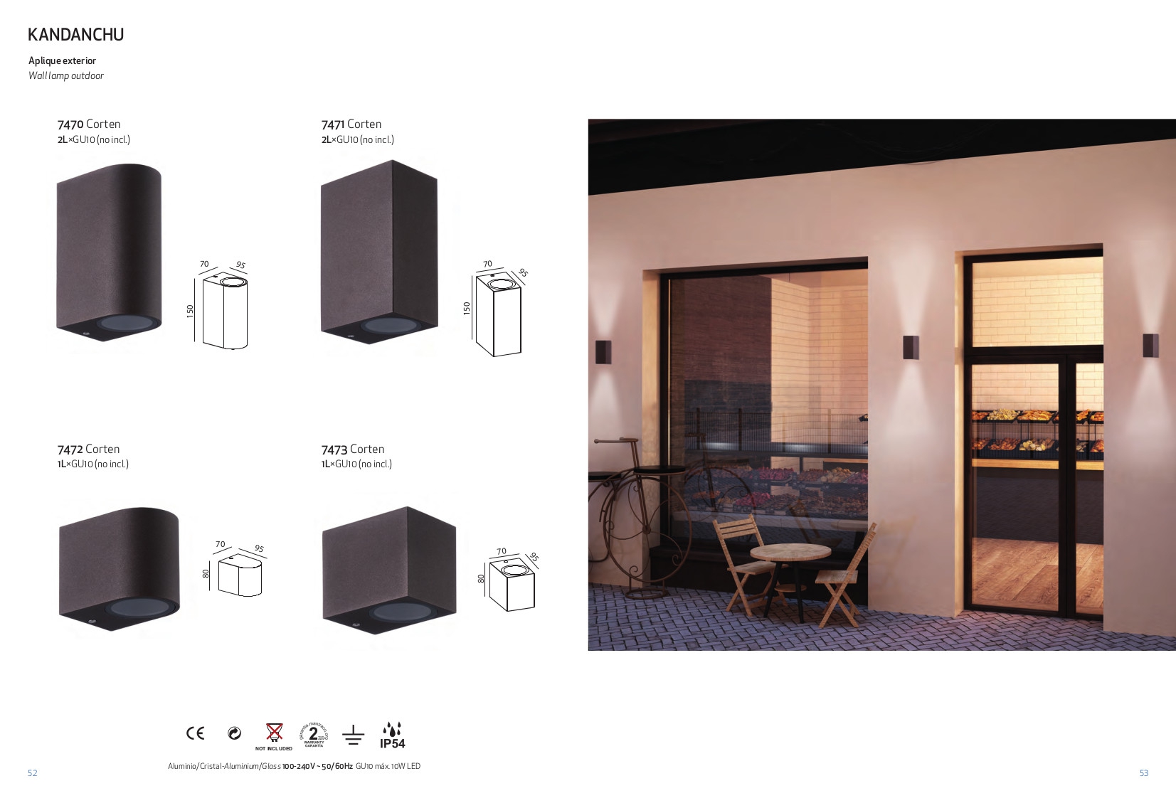 Осветителното тяло 7472 Corten 1 x GU10 (No Incl.) KANDANCHU представлява аплик, външна лампа в съвременен стил. 7472 Corten 1 x GU10 (No Incl.) KANDANCHU е от категорията осветителни тела и е подходящо за осветяване на различни помещения и пространства като: външно осветление, фасадно осветление.