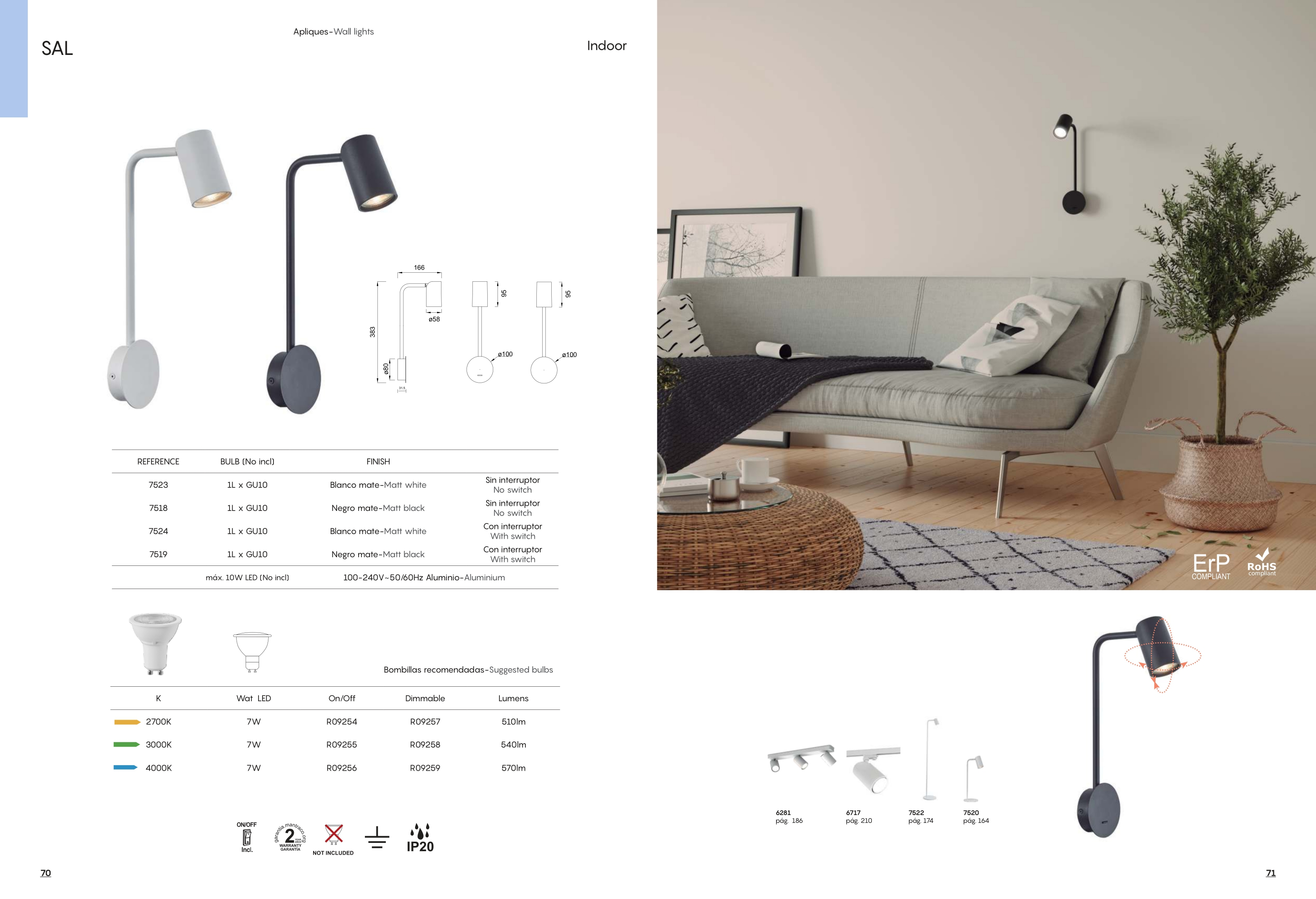 Осветителното тяло 7524 White Arena 1 x GU10 (No Incl.) SAL White представлява аплик в съвременен стил. 7524 White Arena 1 x GU10 (No Incl.) SAL White е от категорията осветителни тела и е подходящо за осветяване на различни помещения и пространства като: спалня.