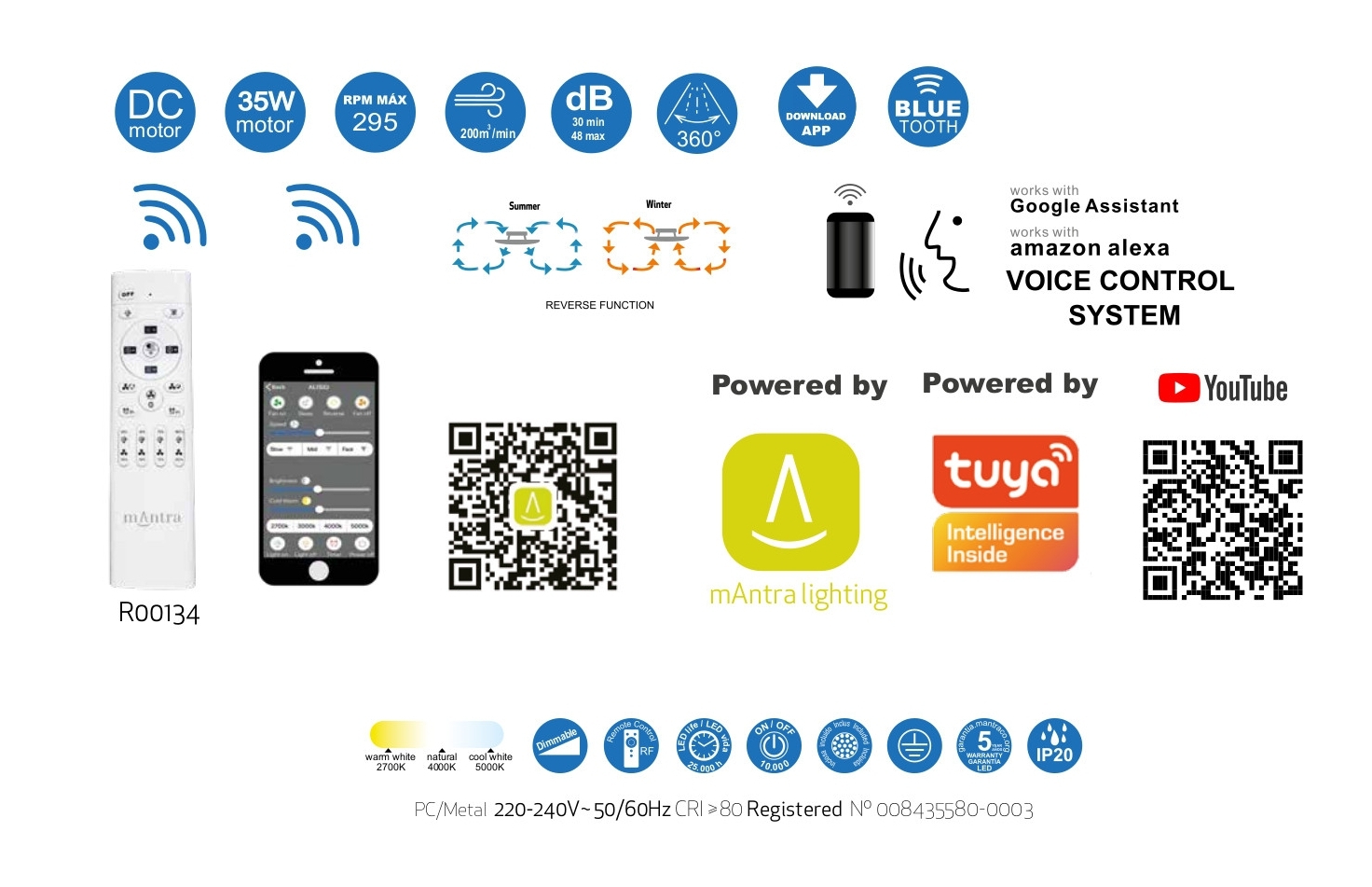 метал в черен цвят, перка в черно, дифузер в млечно бяло, дистанционно + гласов контрол, bluetooth