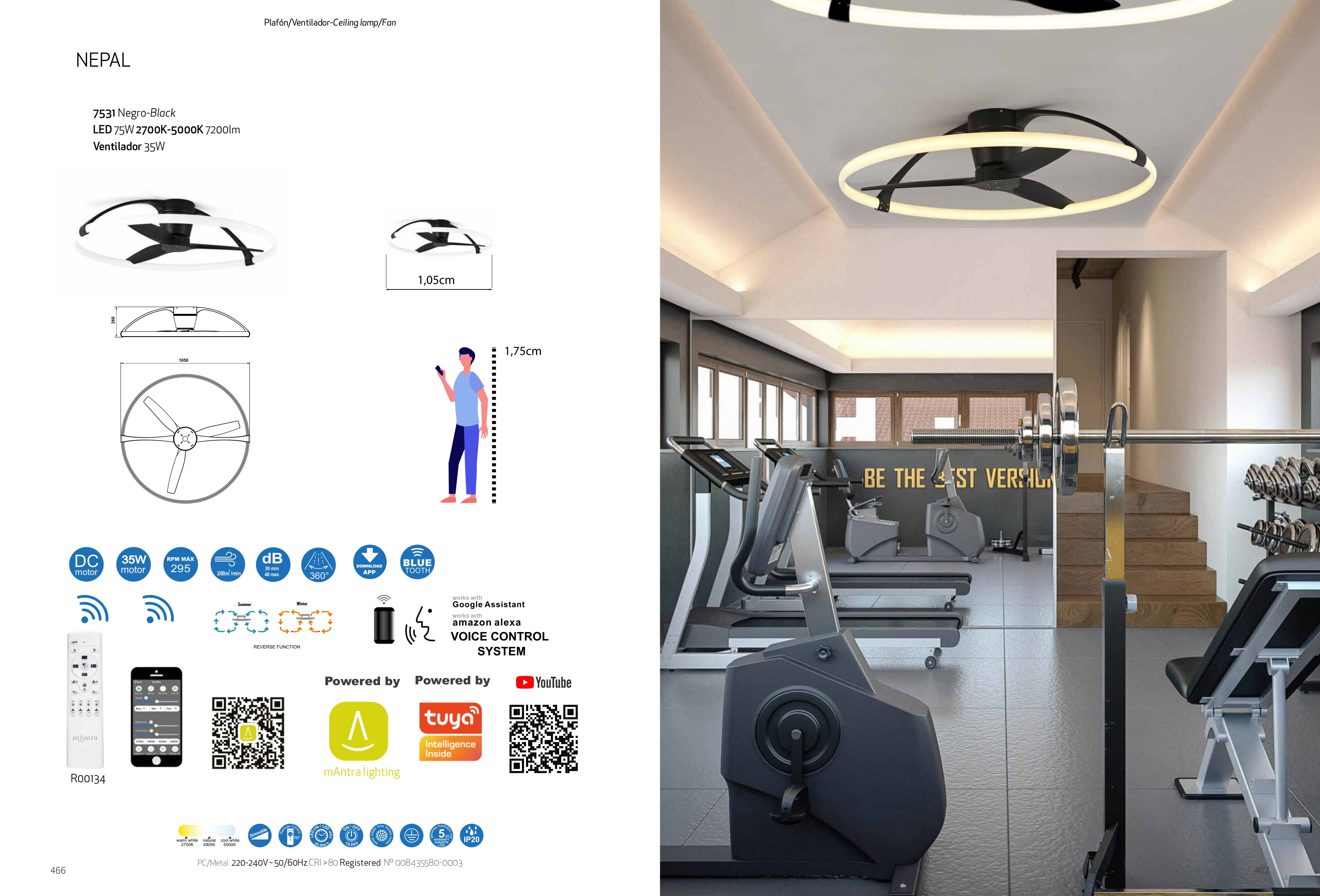 Осветителното тяло 7531 Black 75W 2700K-5000K 7200lm NEPAL ще осигури комфорт и естетика във всяко помещение, в което се постави. Цялостната визия и дизайн на лампата и вложените в изработката й материали, като метал в черен цвят, перка в черно, дифузер в млечно бяло, дистанционно + гласов контрол, bluetooth, ще допринесат за един неповторим стил. Благодарение на дългогодишния опит, качествените материали и строгия контрол на качеството на изработка на производителя Mantra (Испания), 7531 Black 75W 2700K-5000K 7200lm NEPAL е на високо европейско ниво.