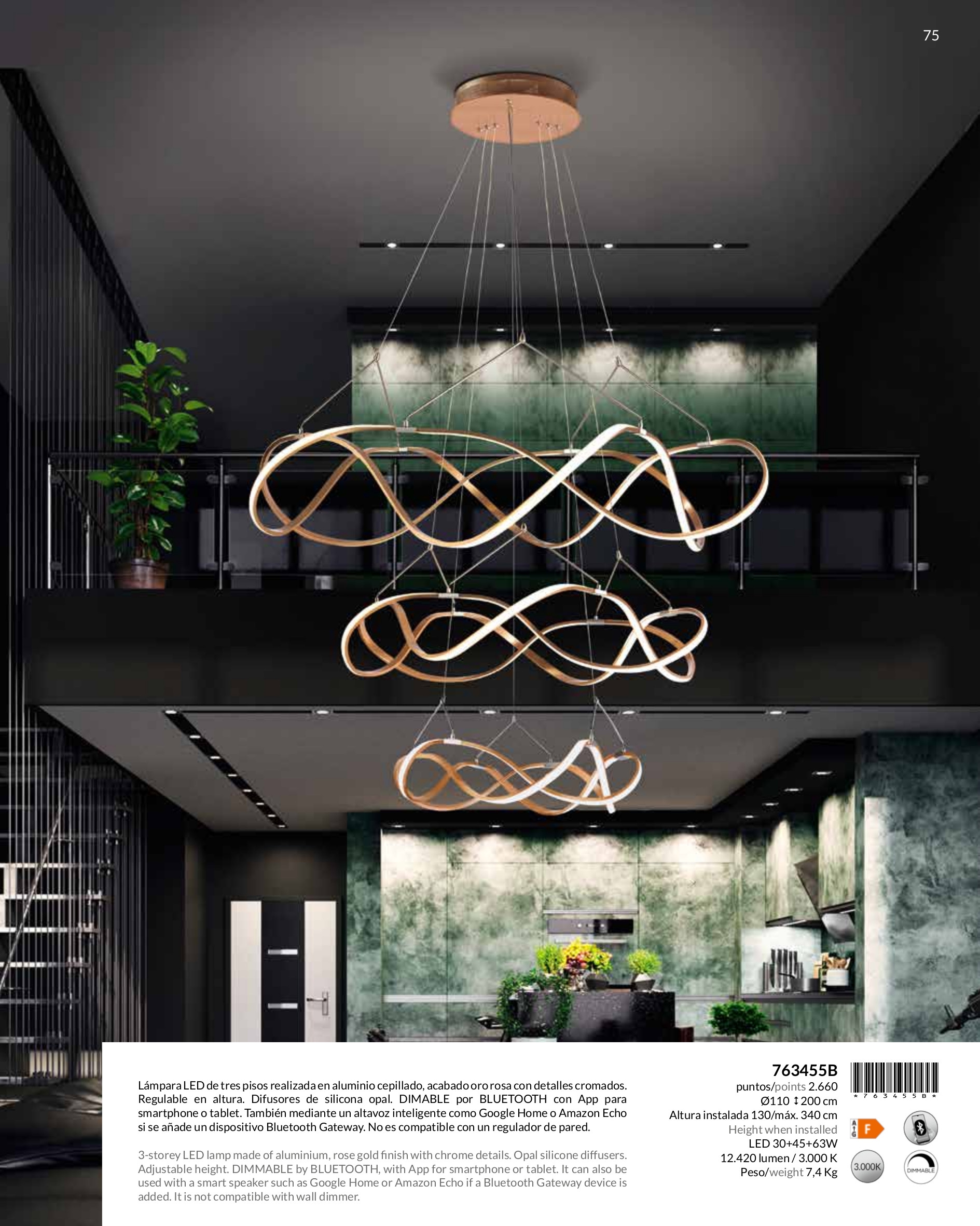 Осветителното тяло 763455B MOLLY LED LAMP ?110 3 RING ROSE GOLD BLUET ще осигури комфорт и естетика във всяко помещение, в което се постави. Цялостната визия и дизайн на лампата и вложените в изработката й материали, като полиран алуминий с покритие от розово злато с хромирани детайли, дифузери от силикон в опалово бял цвят, димиране чрез BLUETOOTH с APP за смартфон или високоговорител като Google Home или Amazon Echo, ще допринесат за един неповторим стил. Благодарение на дългогодишния опит, качествените материали и строгия контрол на качеството на изработка на производителя Schuller (Испания), 763455B MOLLY LED LAMP ?110 3 RING ROSE GOLD BLUET е на високо европейско ниво.