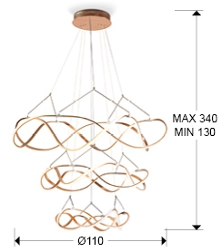 Осветителното тяло 763455B MOLLY LED LAMP ?110 3 RING ROSE GOLD BLUET представлява полилей в съвременен, дизайнерски стил. 763455B MOLLY LED LAMP ?110 3 RING ROSE GOLD BLUET е от категорията осветителни тела и е подходящо за осветяване на различни помещения и пространства като: всекидневна / хол, трапезария, офис.