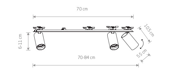 Ел. мощност 4 х 10 W Размери 118-130см x 6-11см x Ф5.5см Производител Nowodvorski, Полша