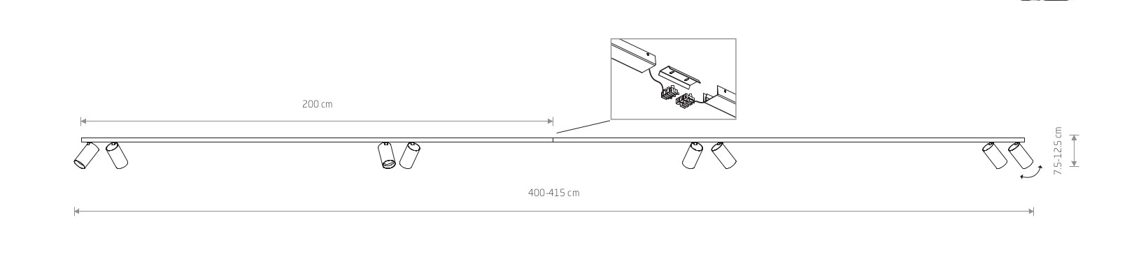 Ел. мощност 8 х 10 W Размери 400-415см x 7.5-12.5см x Ф5.5см Производител Nowodvorski, Полша