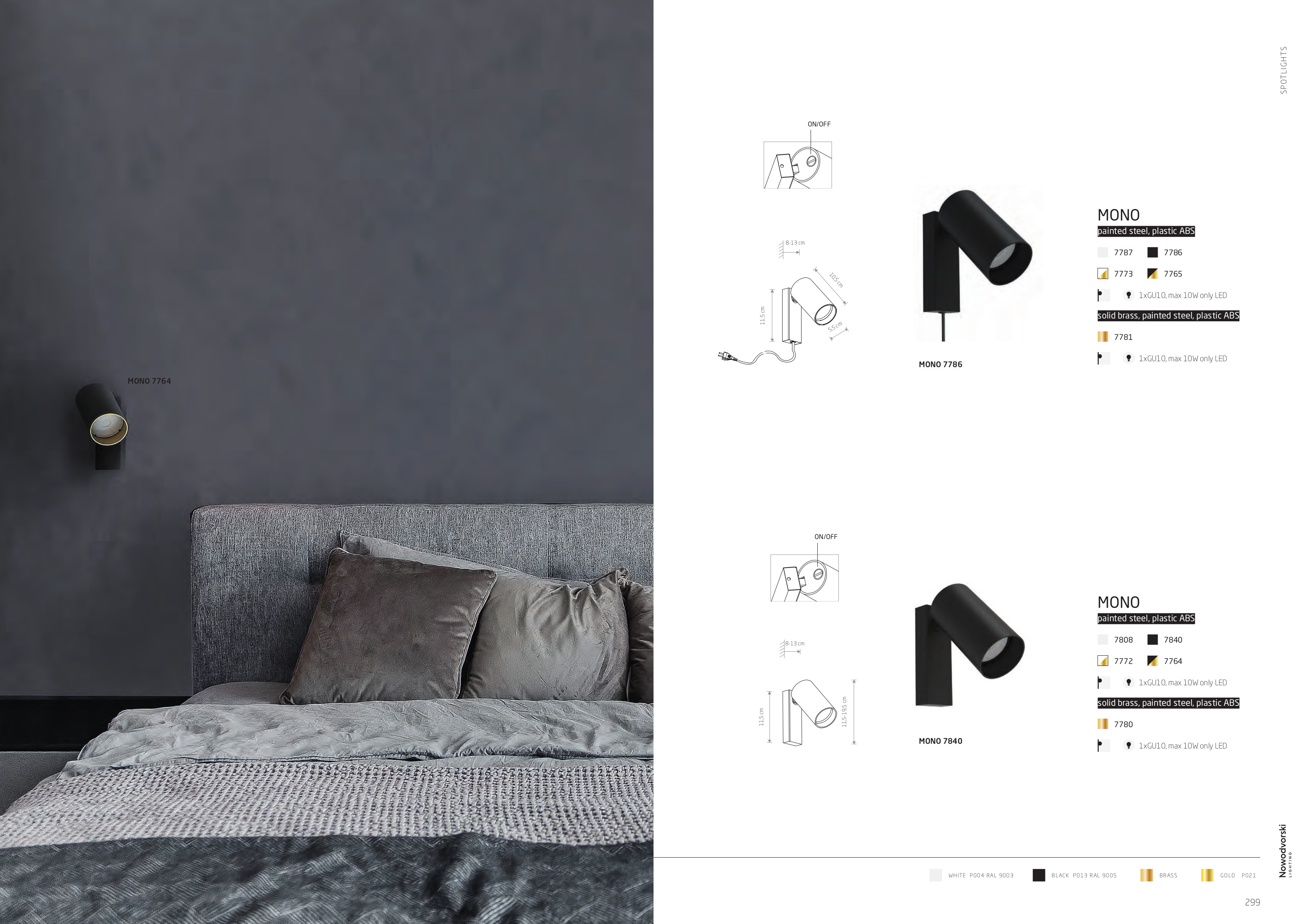 Магазини за осветителни тела ОРИОН представят осветителното тяло @7773 MONO KINKIET I WHITE/GOLD Z PRZEWODEM, което представлява аплик, спот лампа в съвременен стил.