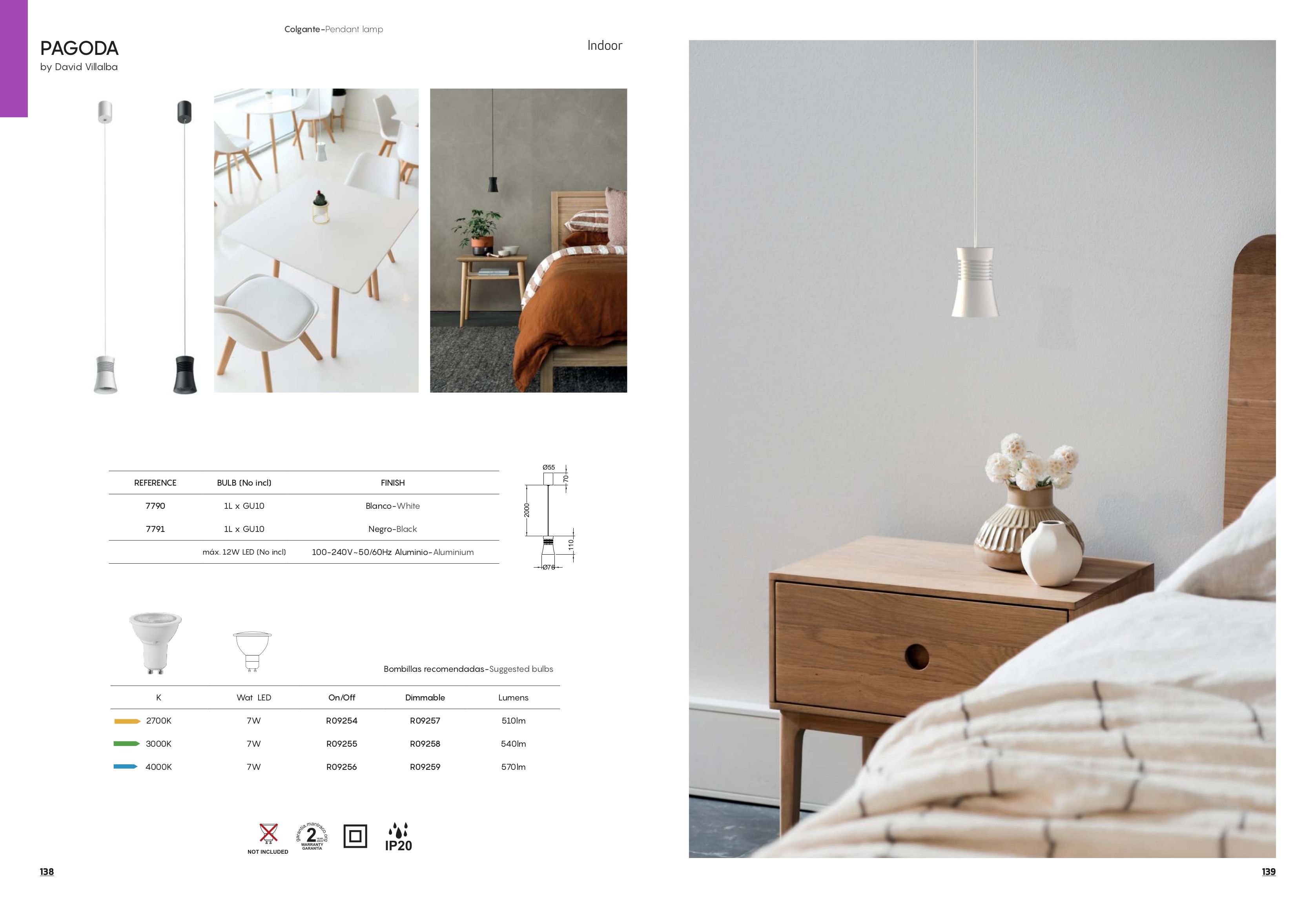 пендел 7790 White 1 x GU10 (No Incl.) PAGODA