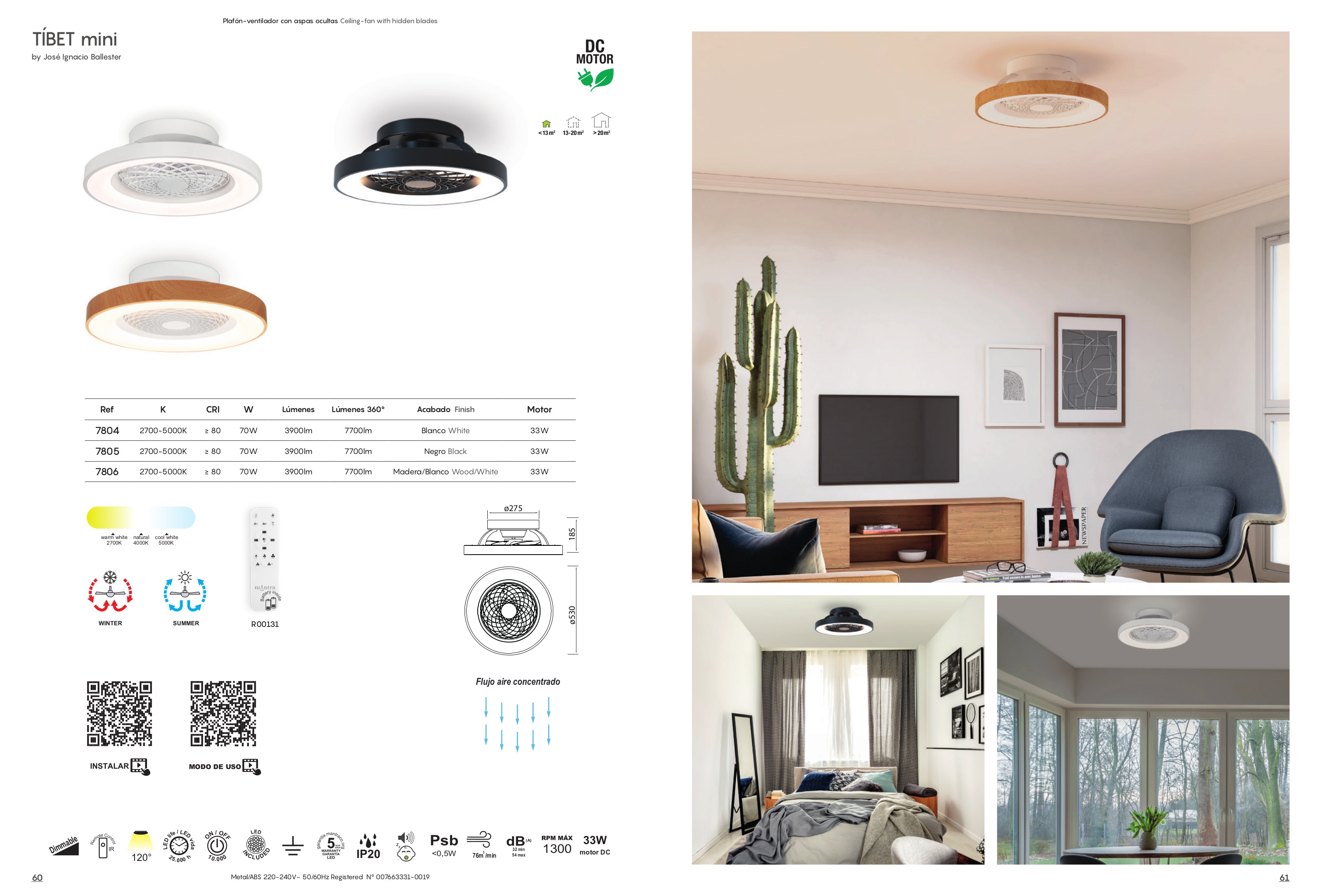 Лед плафон 7805 Black 70W 2700K-5000K 3900lm TIBET MINI ще осигури комфорт и естетика във всяко помещение, в което се постави. Цялостната визия и дизайн на led лампата и вложените в изработката й материали, като метал в 'e,ek цвят, полимер (ABS) в бяло, интегриран вентилатор с DC мотор 33W, дистанционно, ще допринесат за един неповторим стил. Благодарение на дългогодишния опит в производството на лед осветление, качествените материали и строгия контрол на качеството на изработка на производителя Mantra (Испания), 7805 Black 70W 2700K-5000K 3900lm TIBET MINI е на високо европейско ниво.