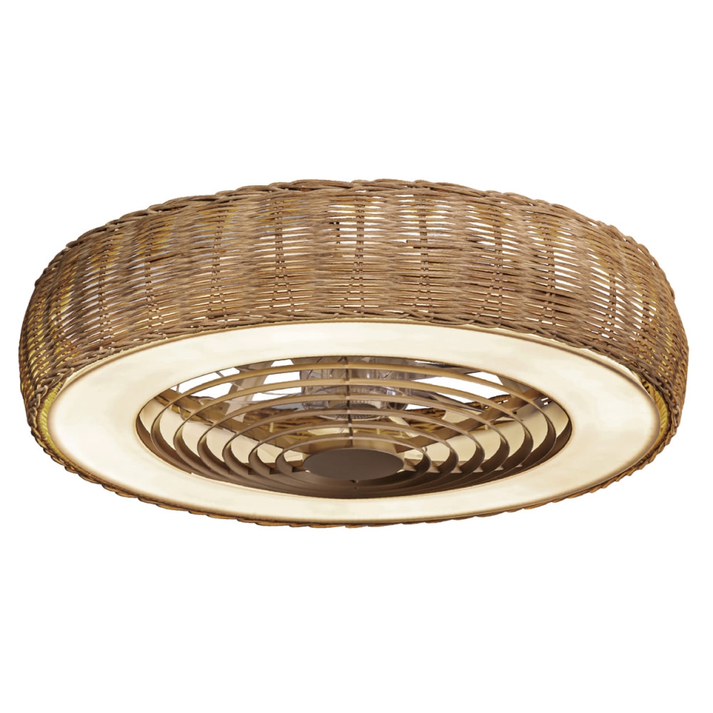 акрил в бяло, естествен ратан, интегриран вентилатор с DC мотор 25W, дистанционно, с което се регулира цветната температура и вентилатора, нощен режим, две опции за монтаж