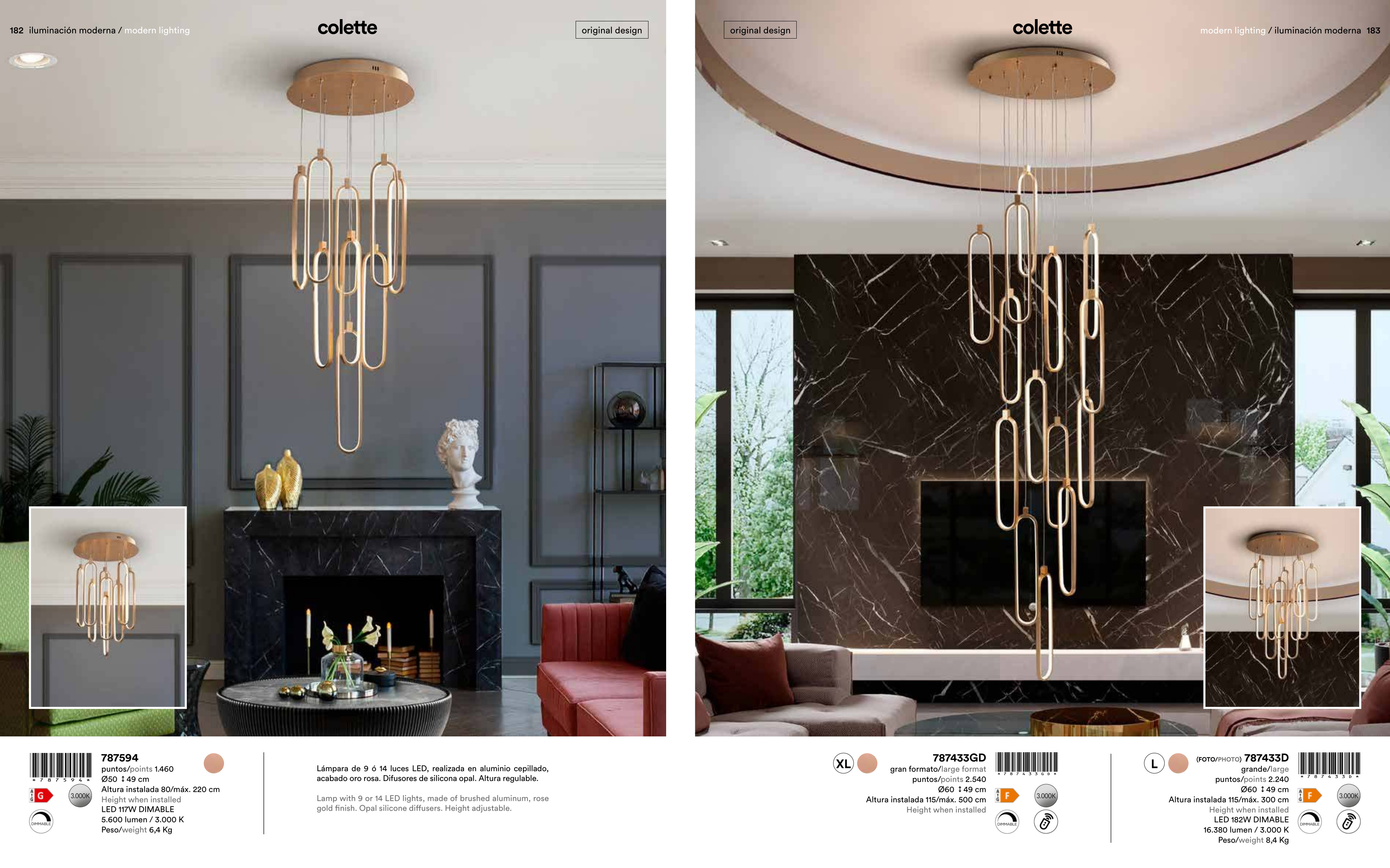 Осветителното тяло 787433GD COLETTE - LAMP 14L ROSE GOLD DIMMABLE представлява лед полилей в съвременен стил. 787433GD COLETTE - LAMP 14L ROSE GOLD DIMMABLE е от категорията и е подходящо за осветяване на различни помещения и пространства като: всекидневна / хол, спалня, кухня, трапезария, офис.