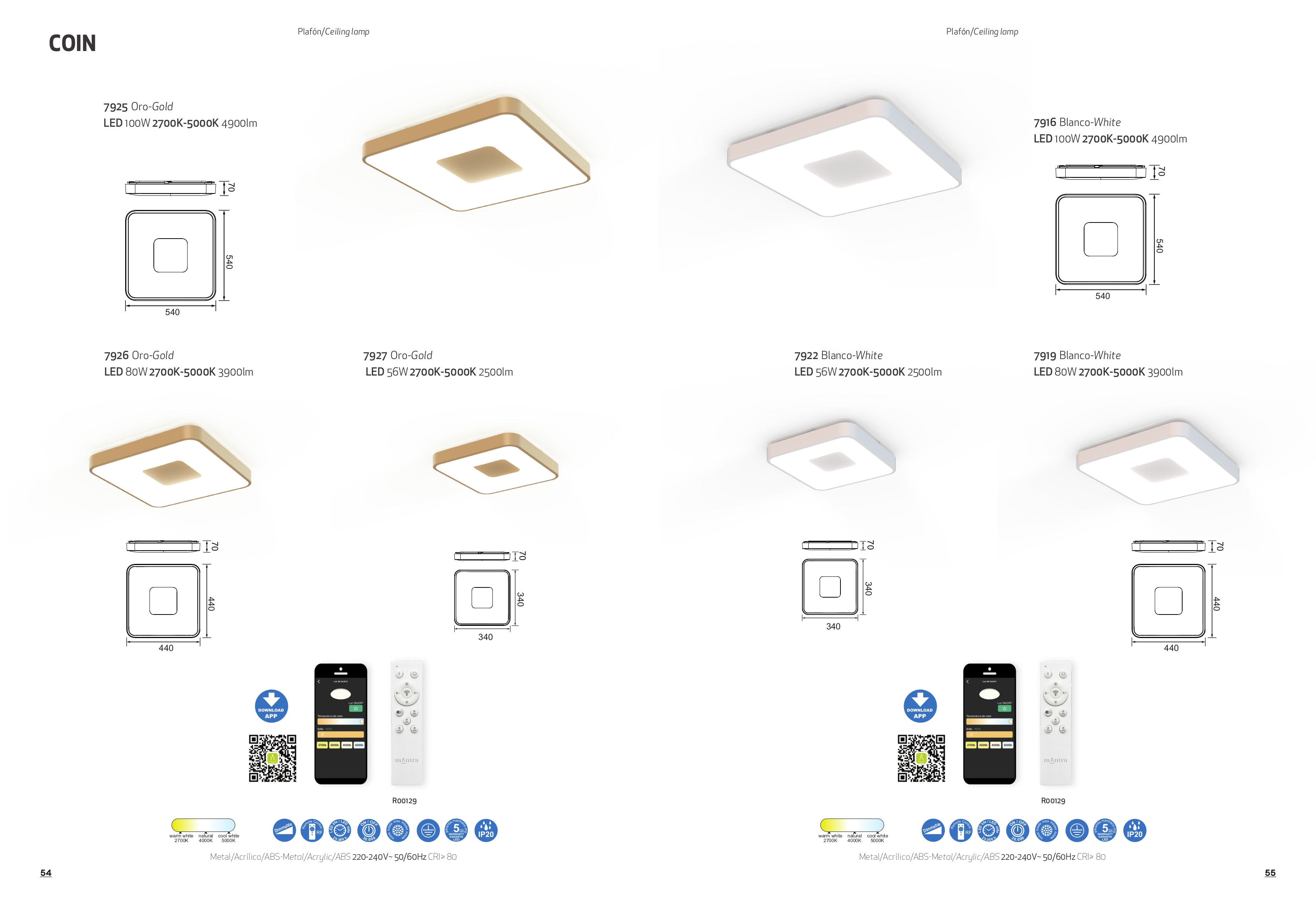Лед плафон 7916 White 100W 2700K-5000K 4900lm COIN CUADRADO ще осигури комфорт и естетика във всяко помещение, в което се постави. Цялостната визия и дизайн на led лампата и вложените в изработката й материали, като метал (ABS) в бял цвят, полимер в бяло, промяна на спектъра на светлината с дистанционно или приложение за смартфон, ще допринесат за един неповторим стил. Благодарение на дългогодишния опит в производството на лед осветление, качествените материали и строгия контрол на качеството на изработка на производителя Mantra (Испания), 7916 White 100W 2700K-5000K 4900lm COIN CUADRADO е на високо европейско ниво.