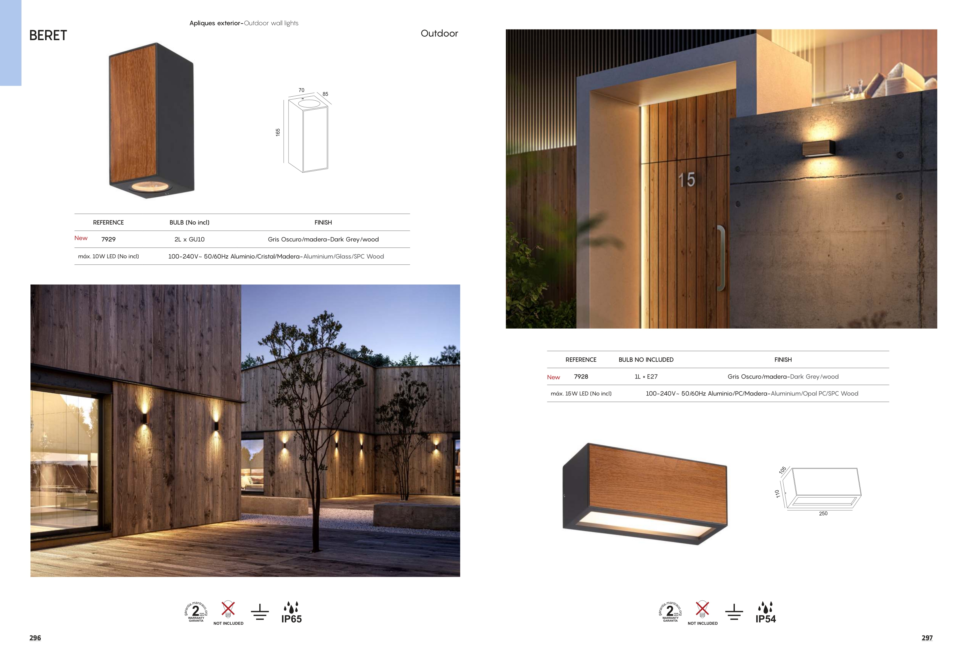 Осветителното тяло 7929 Dark Grey 2 x GU10 (No Incl.) BERET представлява аплик, външна лампа в съвременен стил. 7929 Dark Grey 2 x GU10 (No Incl.) BERET е от категорията осветителни тела и е подходящо за осветяване на различни помещения и пространства като: външно осветление, фасадно осветление.