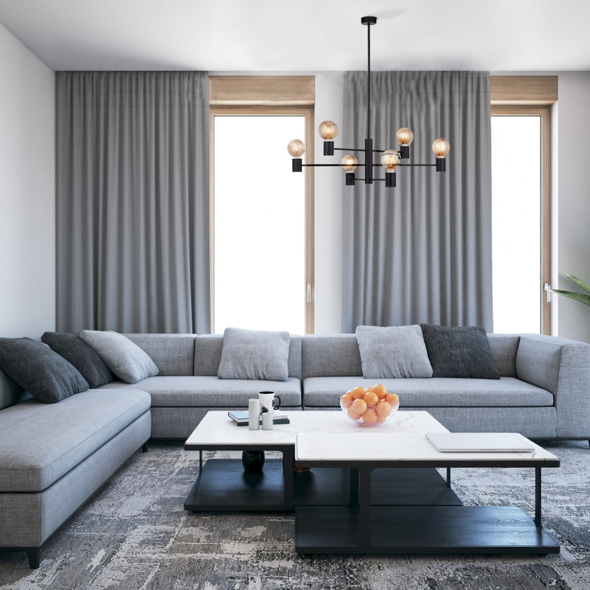 За стила и естетиката на интериора допринасят, както цялостната визия и дизайн на осветителното тяло, така и вложените от производителя в изработката висококачествени материали, като стомана в черен цвят.
