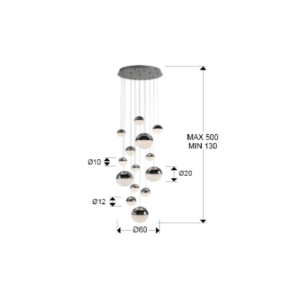 Осветителното тяло 793258D ·SPHERE· DIMMABLE LED LAMP ?60, 14L. представлява лед полилей в съвременен стил. 793258D ·SPHERE· DIMMABLE LED LAMP ?60, 14L. е от категорията и е подходящо за осветяване на различни помещения и пространства като: всекидневна / хол, спалня, кухня, трапезария, офис.