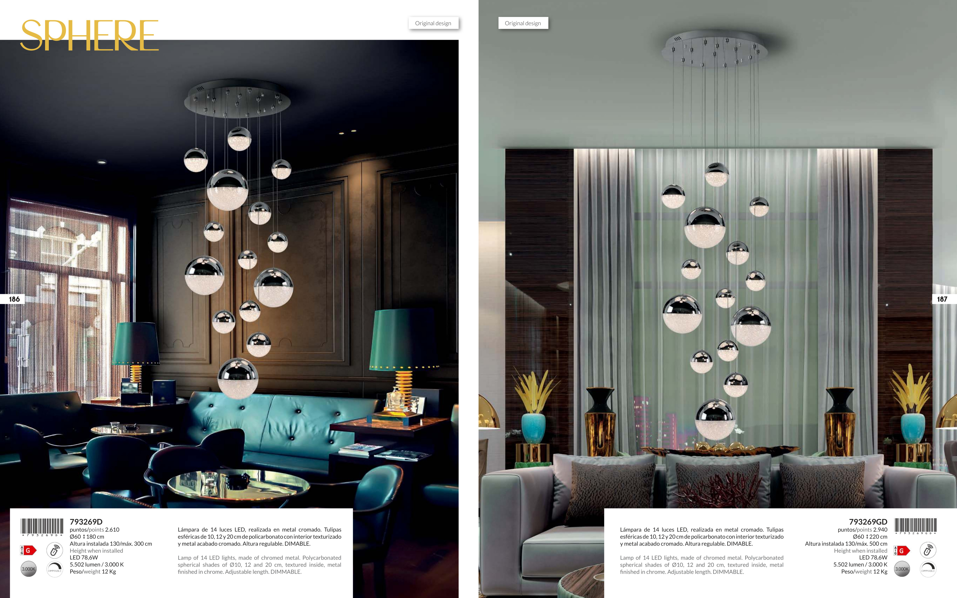 полилей 793269GD ·SPHERE· LED LAMP 14L, CH. ?60X500 DIMMAB
