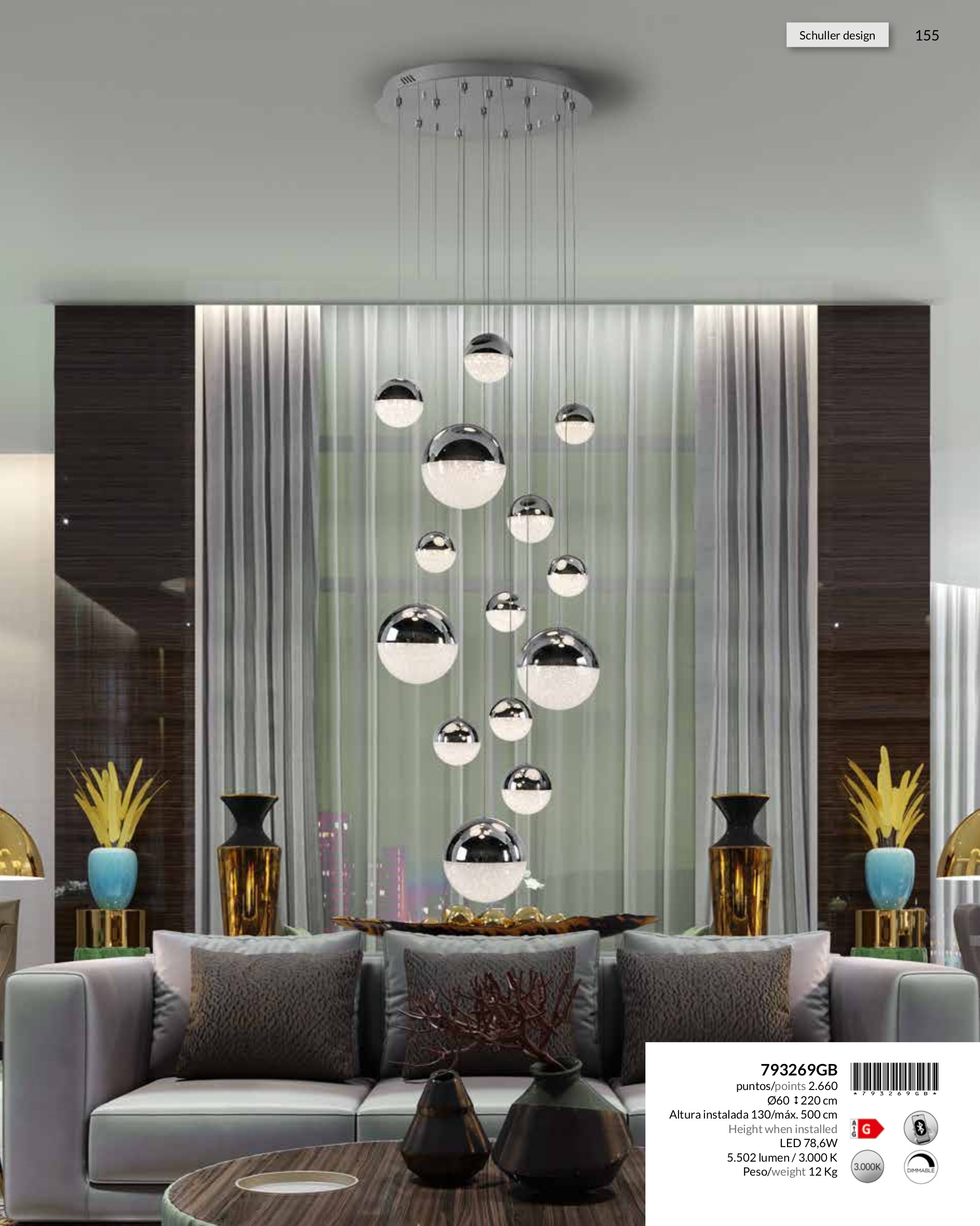 Осветителното тяло 793269GB SPHERE LED LAMP 14L ?60 DIMMABLE ще осигури комфорт и естетика във всяко помещение, в което се постави. Цялостната визия и дизайн на лампата и вложените в изработката й материали, като хромиран метал, сферични дифузери от поликарбонат с текстурирана вътрешност в три размера Ф10см, Ф12см и Ф20см, BLUETOOTH управление с APP за смартфон, ще допринесат за един неповторим стил. Благодарение на дългогодишния опит, качествените материали и строгия контрол на качеството на изработка на производителя Schuller (Испания), 793269GB SPHERE LED LAMP 14L ?60 DIMMABLE е на високо европейско ниво.