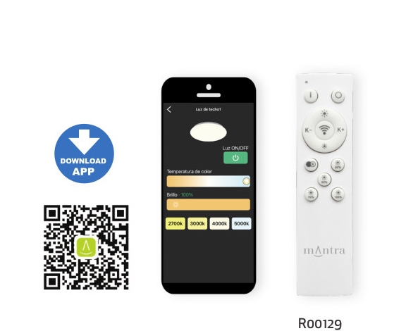 полимер в черен цвят, дифузер от акрил в бяло, управление с дистанционно или приложение за смартфон
