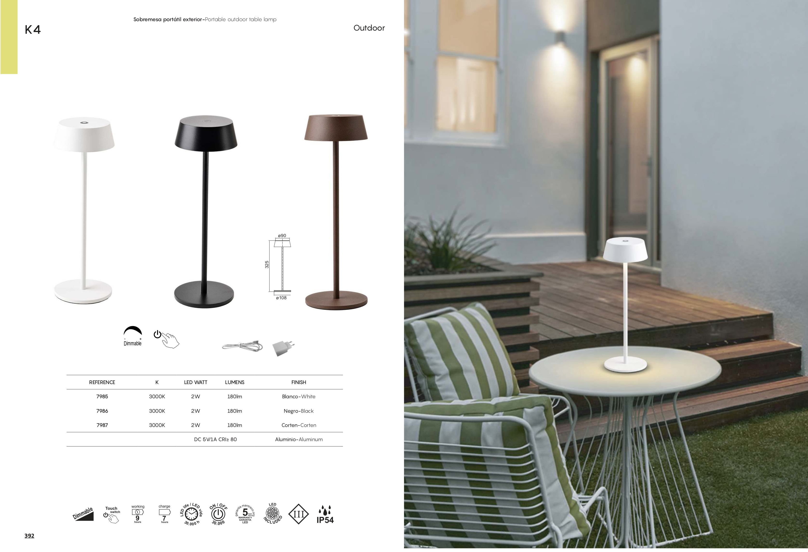 Лед настолна лампа, външна лампа 7986 Black 2W 3000K 180lm DC 5V/1A K4 ще осигури комфорт и естетика във всяко помещение, в което се постави. Цялостната визия и дизайн на led лампата и вложените в изработката й материали, като алуминий в черен цвят, преносима зареждаема лампа с touch контрол, ще допринесат за един неповторим стил. Благодарение на дългогодишния опит в производството на лед осветление, качествените материали и строгия контрол на качеството на изработка на производителя Mantra (Испания), 7986 Black 2W 3000K 180lm DC 5V/1A K4 е на високо европейско ниво.