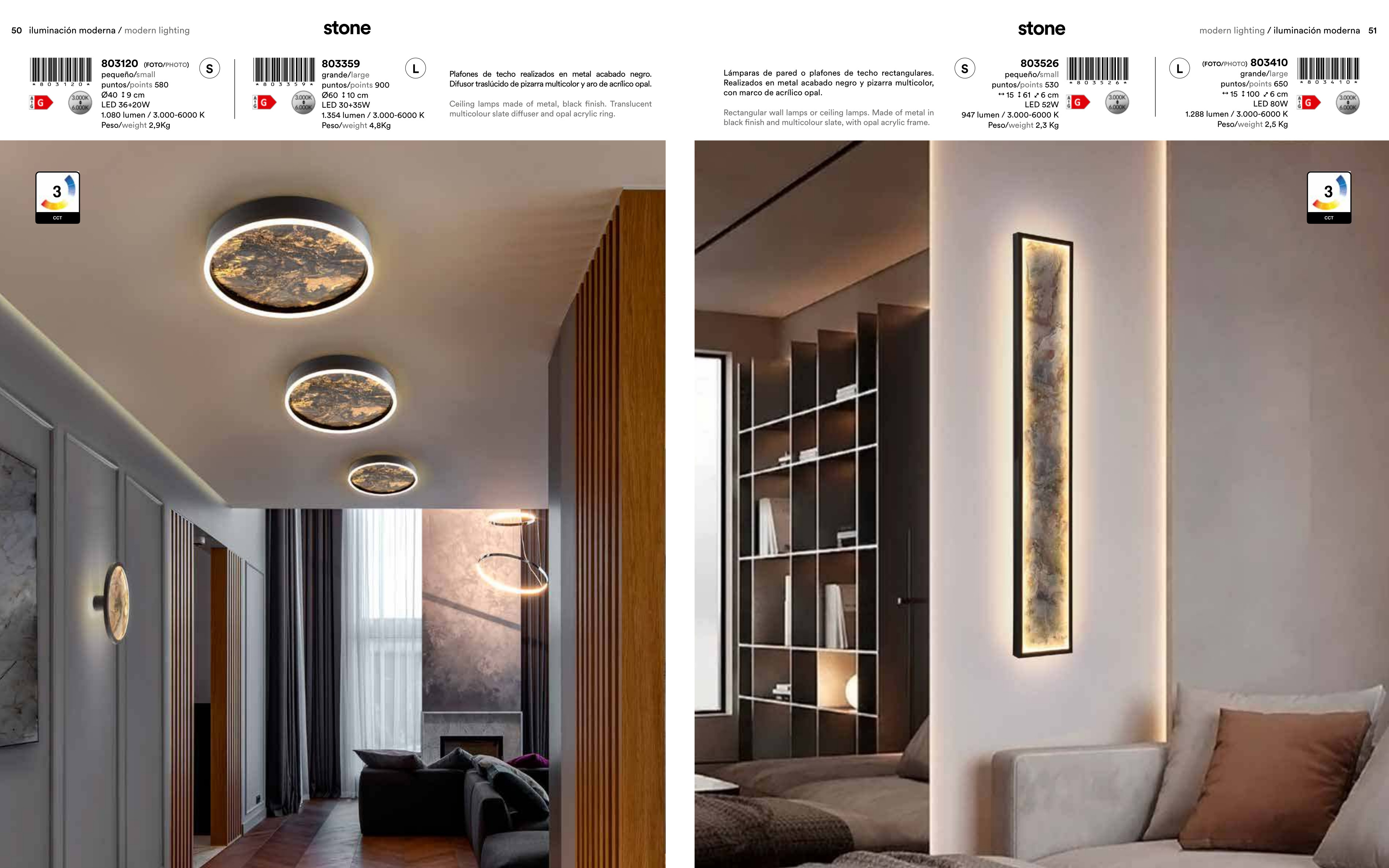 Лед плафон 803120 STONE ще осигури комфорт и естетика във всяко помещение, в което се постави. Цялостната визия и дизайн на led лампата и вложените в изработката й материали, като метал в черен цвят, полупрозрачен дифузьор в цвят шисти, пръстен от акрил в цвят бял опал, ССТ 3000/4000/6000K, ще допринесат за един неповторим стил. Благодарение на дългогодишния опит в производството на лед осветление, качествените материали и строгия контрол на качеството на изработка на производителя Schuller (Испания), 803120 STONE е на високо европейско ниво.