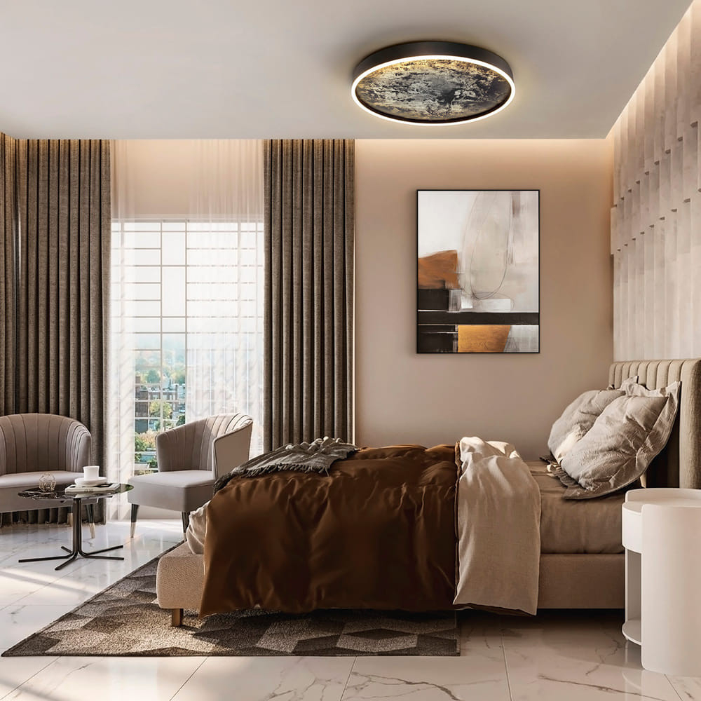 Осветителното тяло 803359 STONE ще осигури комфорт и естетика във всяко помещение, в което се постави. Цялостната визия и дизайн на лампата и вложените в изработката й материали, като метал в черен цвят, полупрозрачен дифузьор в цвят шисти, пръстен от акрил в цвят бял опал, ССТ 3000/4000/6000K, ще допринесат за един неповторим стил. Благодарение на дългогодишния опит, качествените материали и строгия контрол на качеството на изработка на производителя Schuller (Испания), 803359 STONE е на високо европейско ниво.