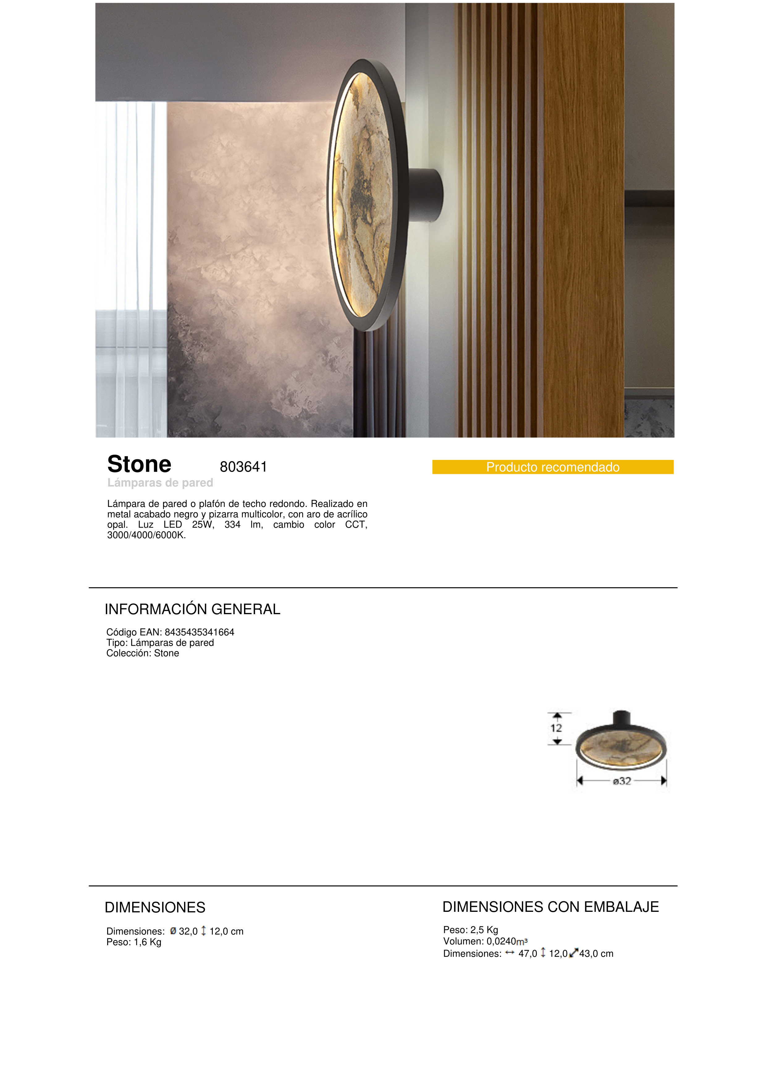 Осветителното тяло 803641 STONE- WALL LAMP LED CCT-BLACK D30 ще осигури комфорт и естетика във всяко помещение, в което се постави. Цялостната визия и дизайн на лампата и вложените в изработката й материали, като метал в черен цвят, полупрозрачен дифузьор в цвят шисти, пръстен от акрил в цвят бял опал, ССТ 3000/4000/6000K, ще допринесат за един неповторим стил. Благодарение на дългогодишния опит, качествените материали и строгия контрол на качеството на изработка на производителя Schuller (Испания), 803641 STONE- WALL LAMP LED CCT-BLACK D30 е на високо европейско ниво.