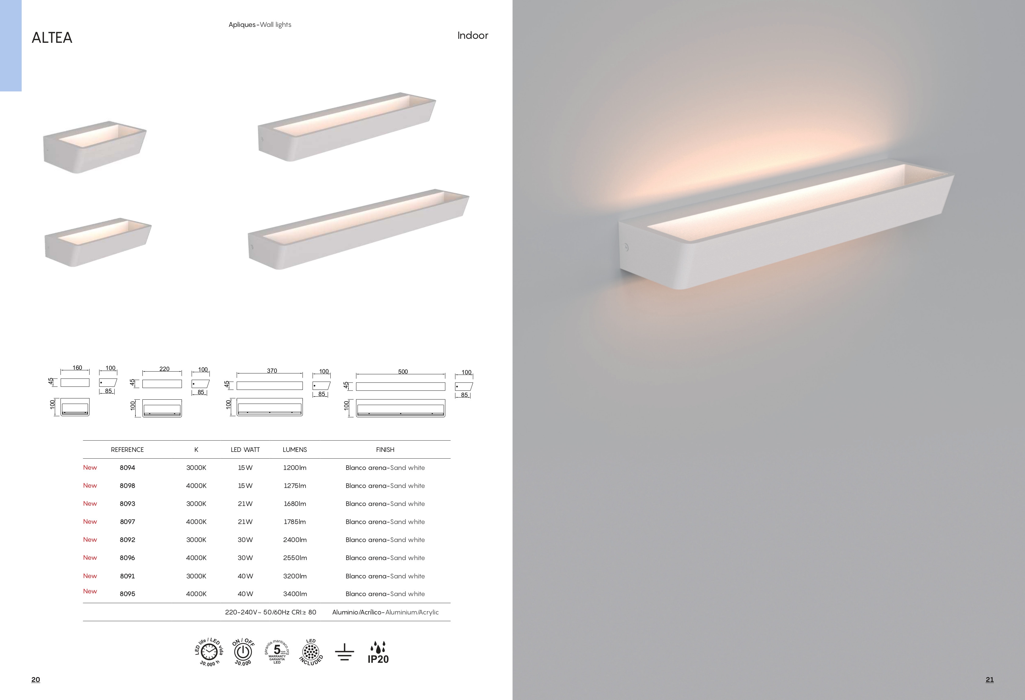 Осветителното тяло 8092 White 30W 3000K 2400lm ALTEA представлява аплик в съвременен стил. 8092 White 30W 3000K 2400lm ALTEA е от категорията осветителни тела и е подходящо за осветяване на различни помещения и пространства като: всекидневна / хол, спалня, кухня, трапезария, коридор, антре, стълбище, офис.