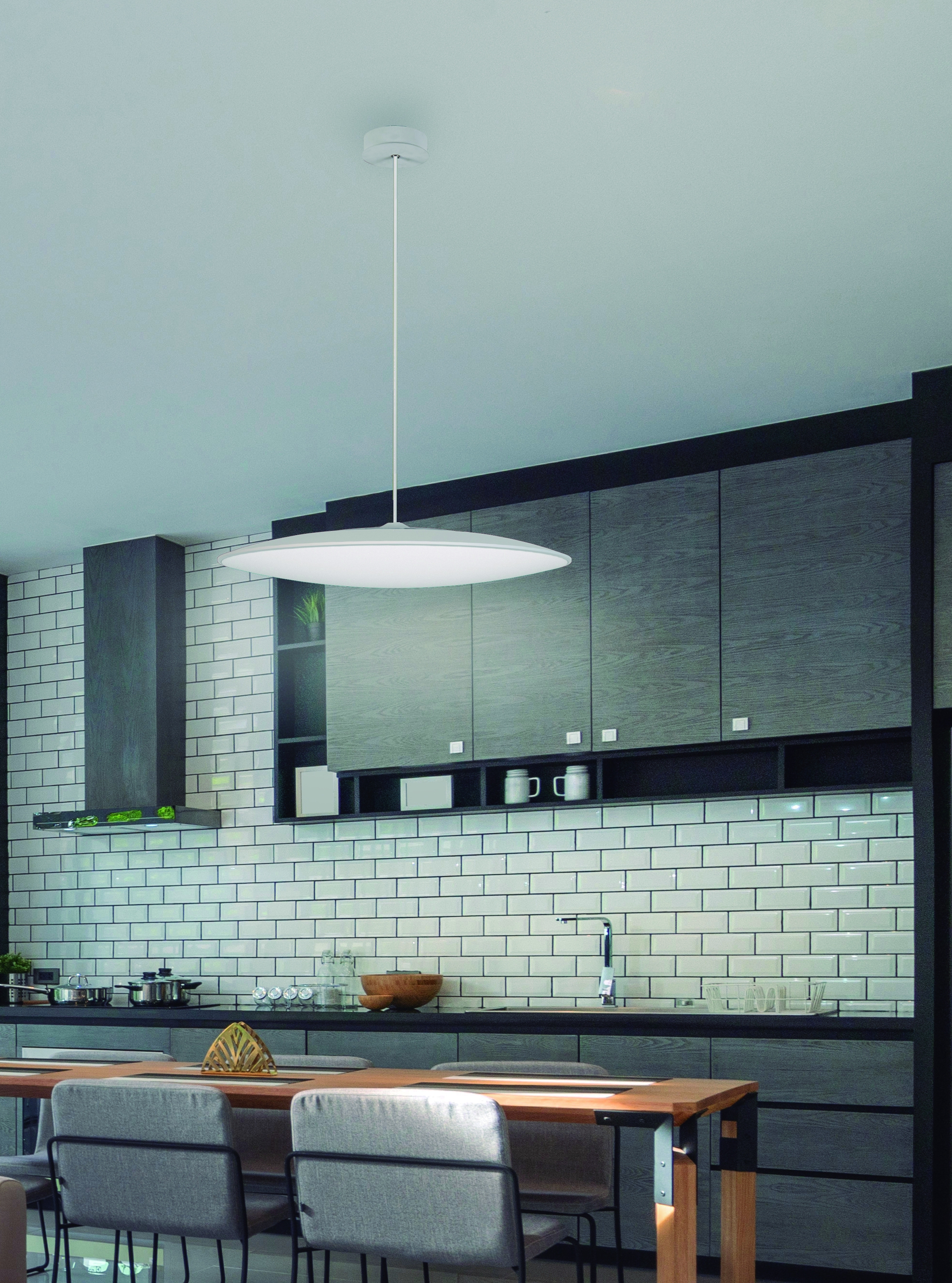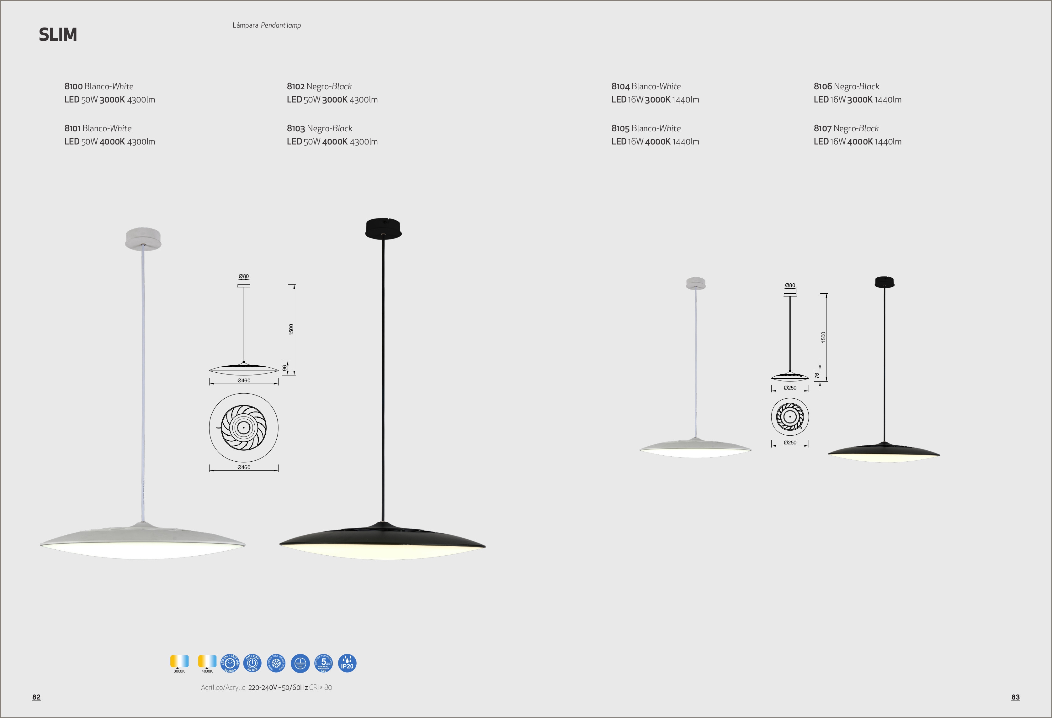 Осветителното тяло 8101 White 50W 4000K 4250lm SLIM представлява лед пендел в съвременен стил. 8101 White 50W 4000K 4250lm SLIM е от категорията и е подходящо за осветяване на различни помещения и пространства като: всекидневна / хол, спалня, кухня, трапезария, коридор, антре, офис.