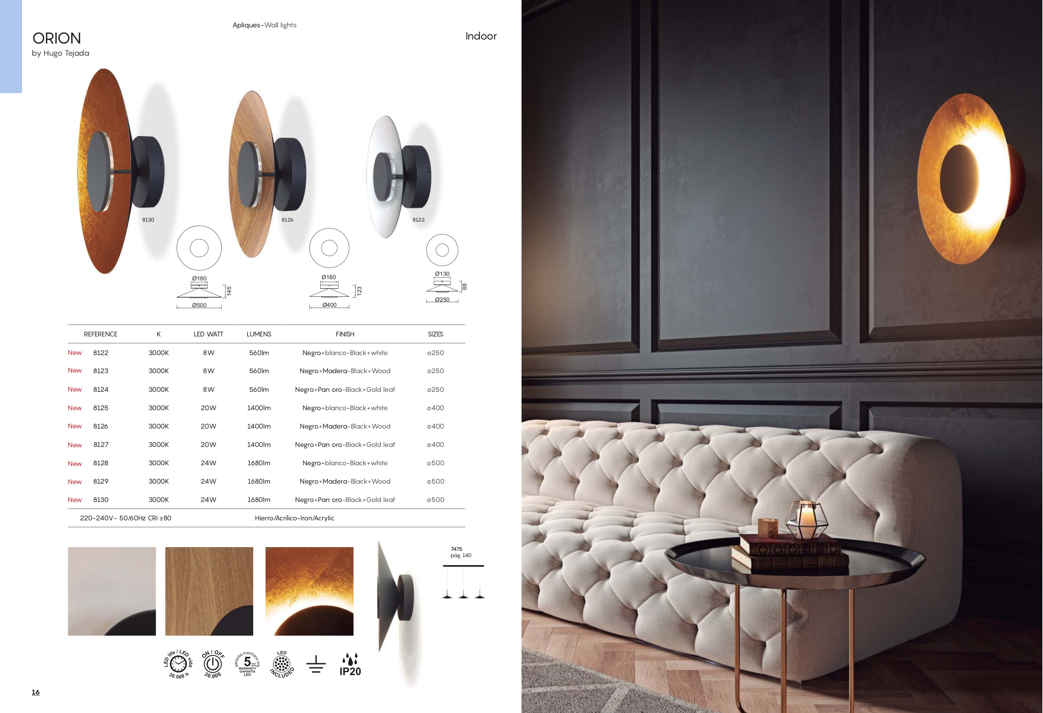 Осветителното тяло 8124 Black+Gold 8W 3000K 560lm ORION ще осигури комфорт и естетика във всяко помещение, в което се постави. Цялостната визия и дизайн на лампата и вложените в изработката й материали, като стомана в черен цвят, полимер с апликиран златен лист, ще допринесат за един неповторим стил. Благодарение на дългогодишния опит, качествените материали и строгия контрол на качеството на изработка на производителя Mantra (Испания), 8124 Black+Gold 8W 3000K 560lm ORION е на високо европейско ниво.