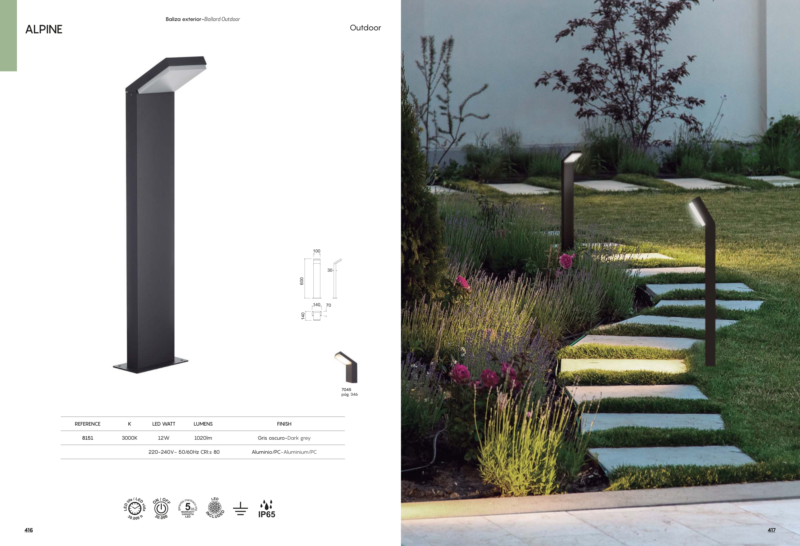 Осветителното тяло 8151 Dark Grey 12W 3000K 1020lm ALPINE представлява външна лампа в съвременен стил. 8151 Dark Grey 12W 3000K 1020lm ALPINE е от категорията осветителни тела и е подходящо за осветяване на различни помещения и пространства като: градинско осветление, външно осветление.