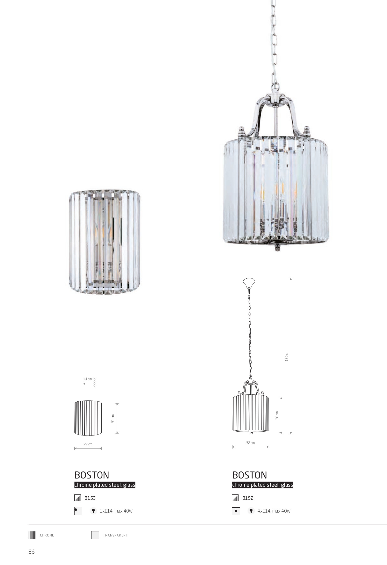 Осветителното тяло 8153 BOSTON I kinkiet ще осигури комфорт и естетика във всяко помещение, в което се постави. Цялостната визия и дизайн на лампата и вложените в изработката й материали, като призми от прозрачно стъкло, хромирана стомана, ще допринесат за един неповторим стил. Благодарение на дългогодишния опит, качествените материали и строгия контрол на качеството на изработка на производителя Nowodvorski (Полша), 8153 BOSTON I kinkiet е на високо европейско ниво.
