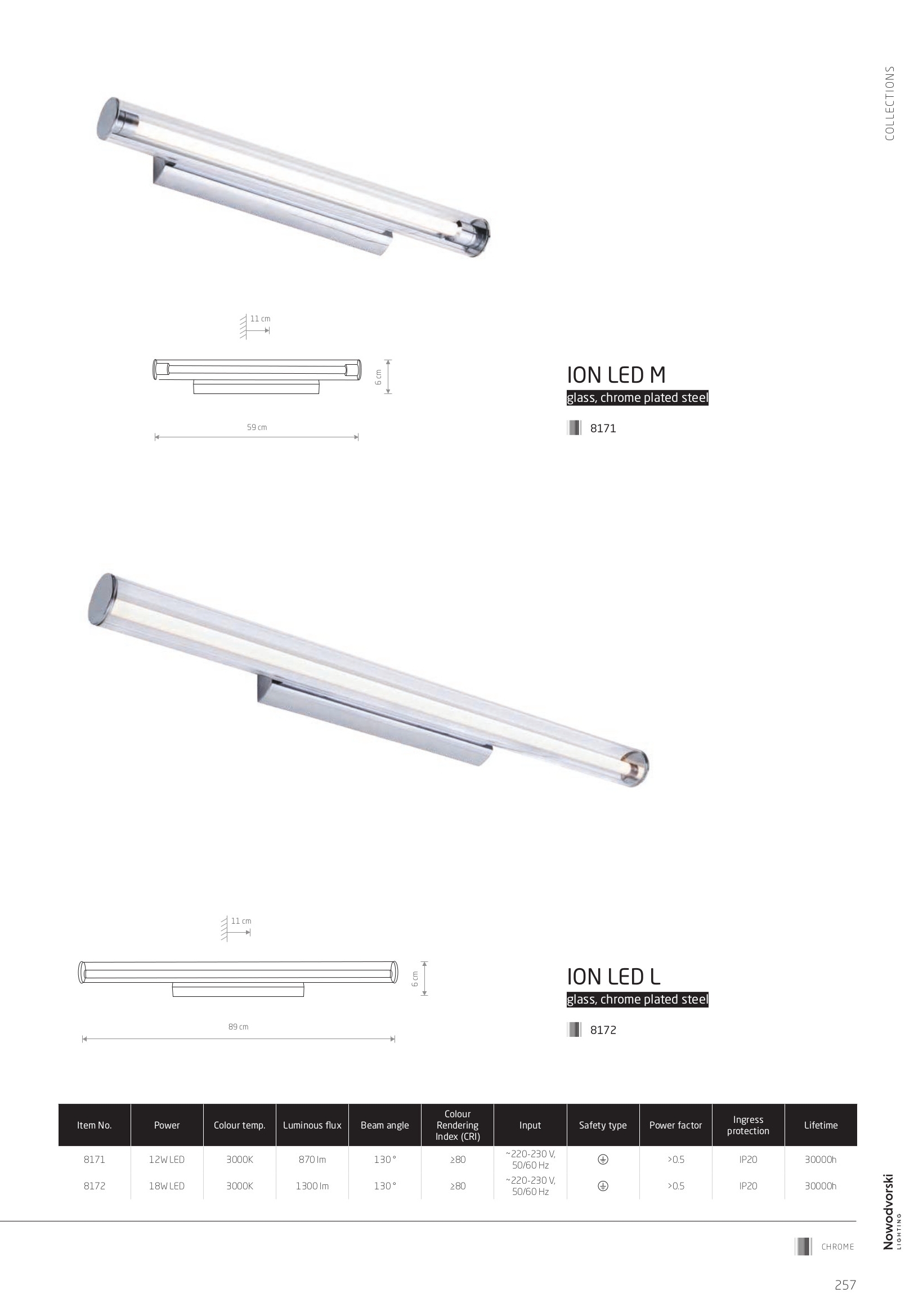 Лед аплик 8171 ION LED M ще осигури комфорт и естетика във всяко помещение, в което се постави. Цялостната визия и дизайн на led лампата и вложените в изработката й материали, като хромирана стомана, стъкло, ще допринесат за един неповторим стил. Благодарение на дългогодишния опит в производството на лед осветление, качествените материали и строгия контрол на качеството на изработка на производителя Nowodvorski (Полша), 8171 ION LED M е на високо европейско ниво.