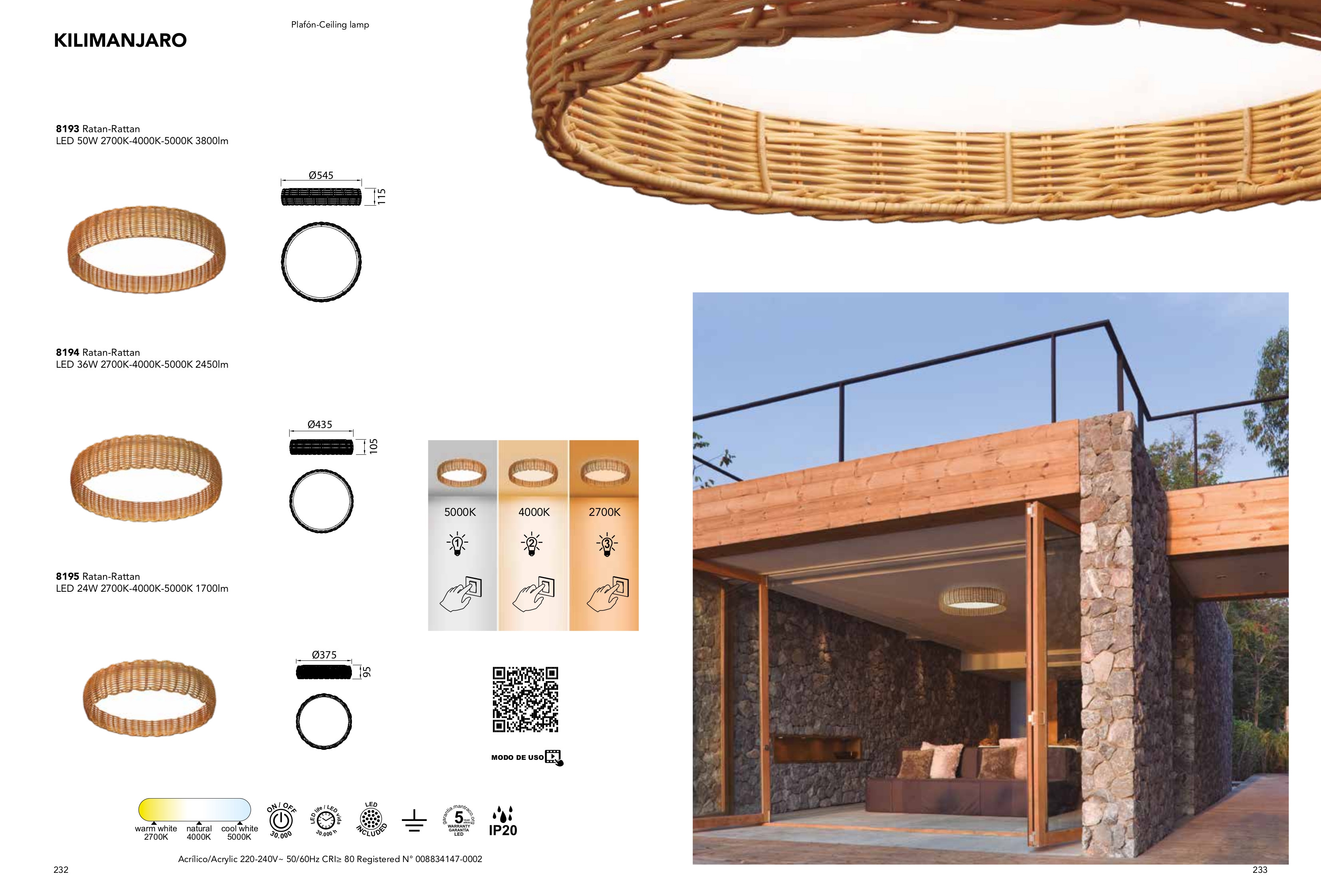 Лед плафон 8195 LED CEILING 24W 5000K Ratan ще осигури комфорт и естетика във всяко помещение, в което се постави. Цялостната визия и дизайн на led лампата и вложените в изработката й материали, като ратан, дифузер от полимер в бял цвят, ще допринесат за един неповторим стил. Благодарение на дългогодишния опит в производството на лед осветление, качествените материали и строгия контрол на качеството на изработка на производителя Mantra (Испания), 8195 LED CEILING 24W 5000K Ratan е на високо европейско ниво.