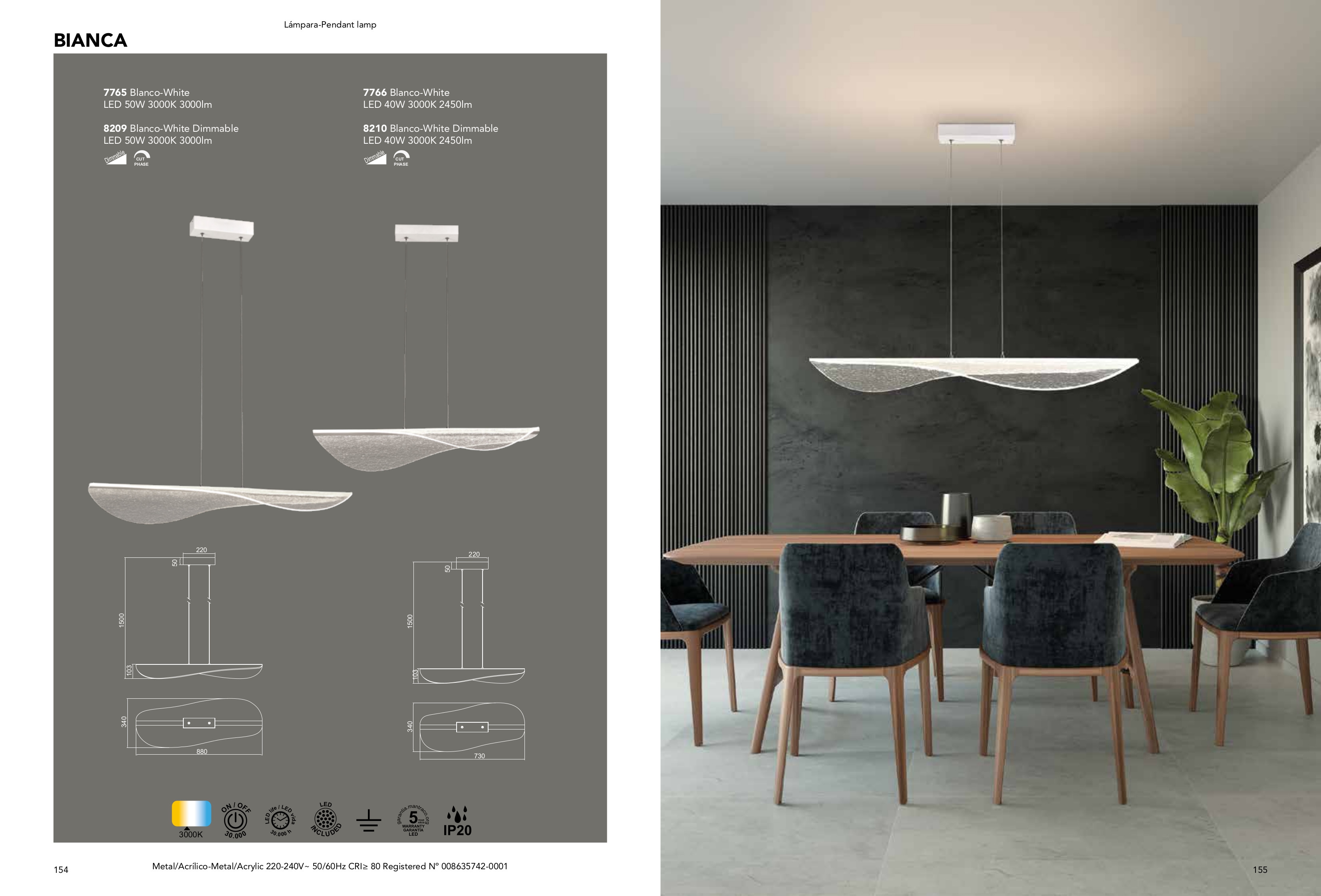 Лед пендел 8210 LED PENDANT 40W 3000K DIMMABLE WHITE ще осигури комфорт и естетика във всяко помещение, в което се постави. Цялостната визия и дизайн на led лампата и вложените в изработката й материали, като метал в бял цвят, дифузер от текстуриран полимер, ще допринесат за един неповторим стил. Благодарение на дългогодишния опит в производството на лед осветление, качествените материали и строгия контрол на качеството на изработка на производителя Mantra (Испания), 8210 LED PENDANT 40W 3000K DIMMABLE WHITE е на високо европейско ниво.