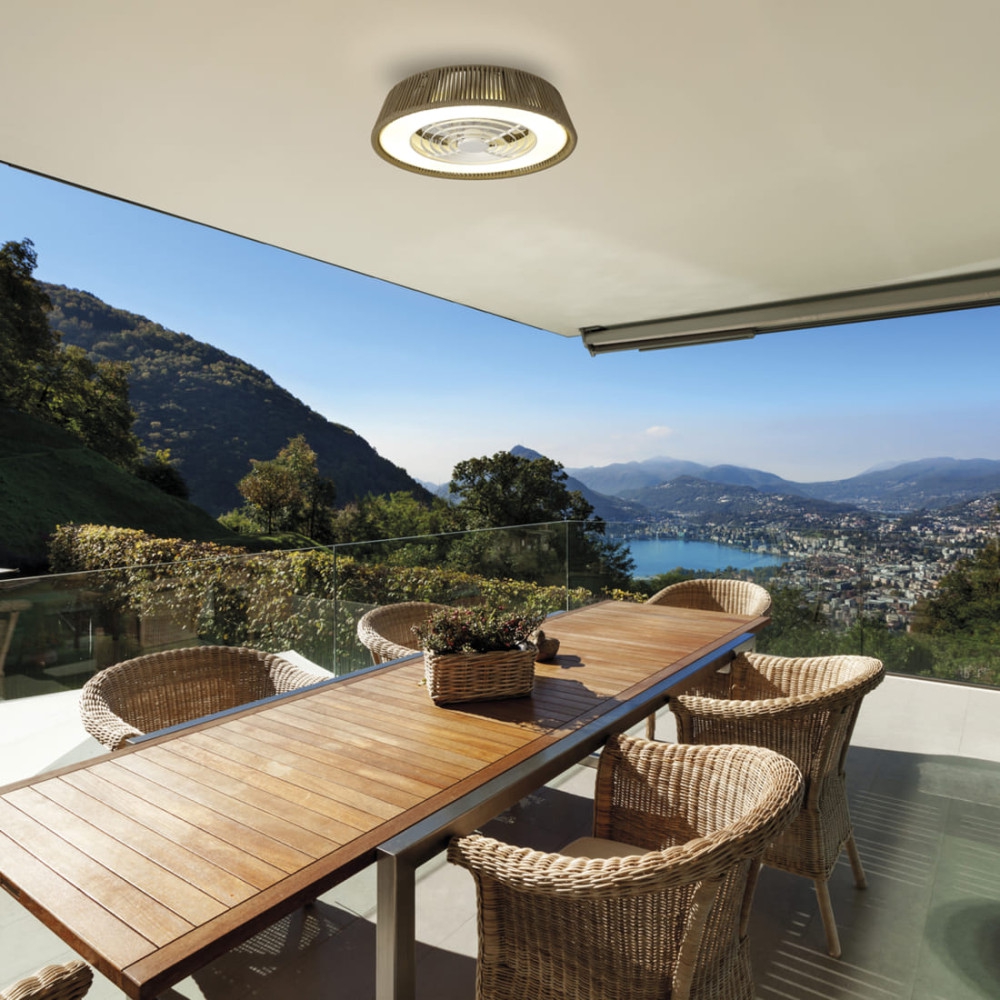 Осветителното тяло 8228 Textileno LED 55W/2700K-5000K Ventilador 25W представлява плафон, външна лампа в съвременен стил. 8228 Textileno LED 55W/2700K-5000K Ventilador 25W е от категорията осветителни тела и е подходящо за осветяване на различни помещения и пространства като: всекидневна / хол, спалня, кухня, трапезария, офис, външно осветление, фасадно осветление.