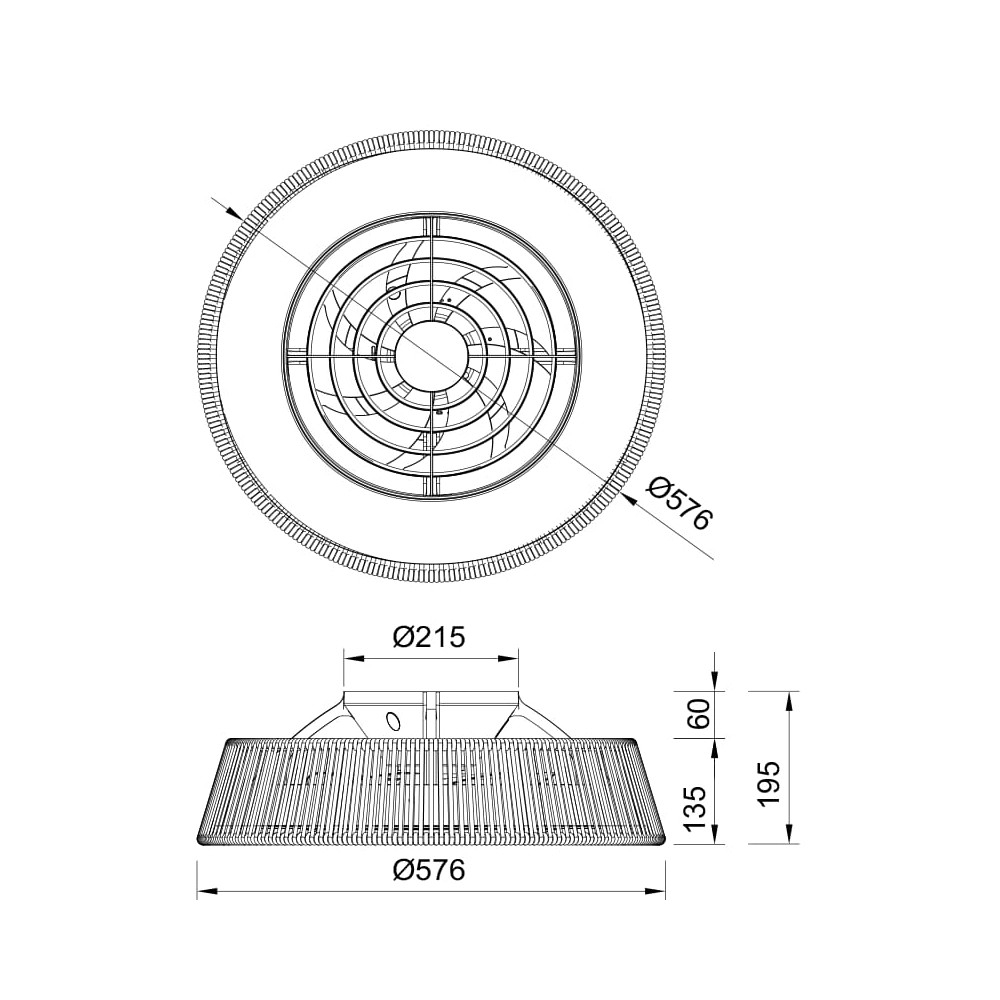 плафон 8229 Cuerda Nat LED 70W/2700K-5000K Ventilador 35W