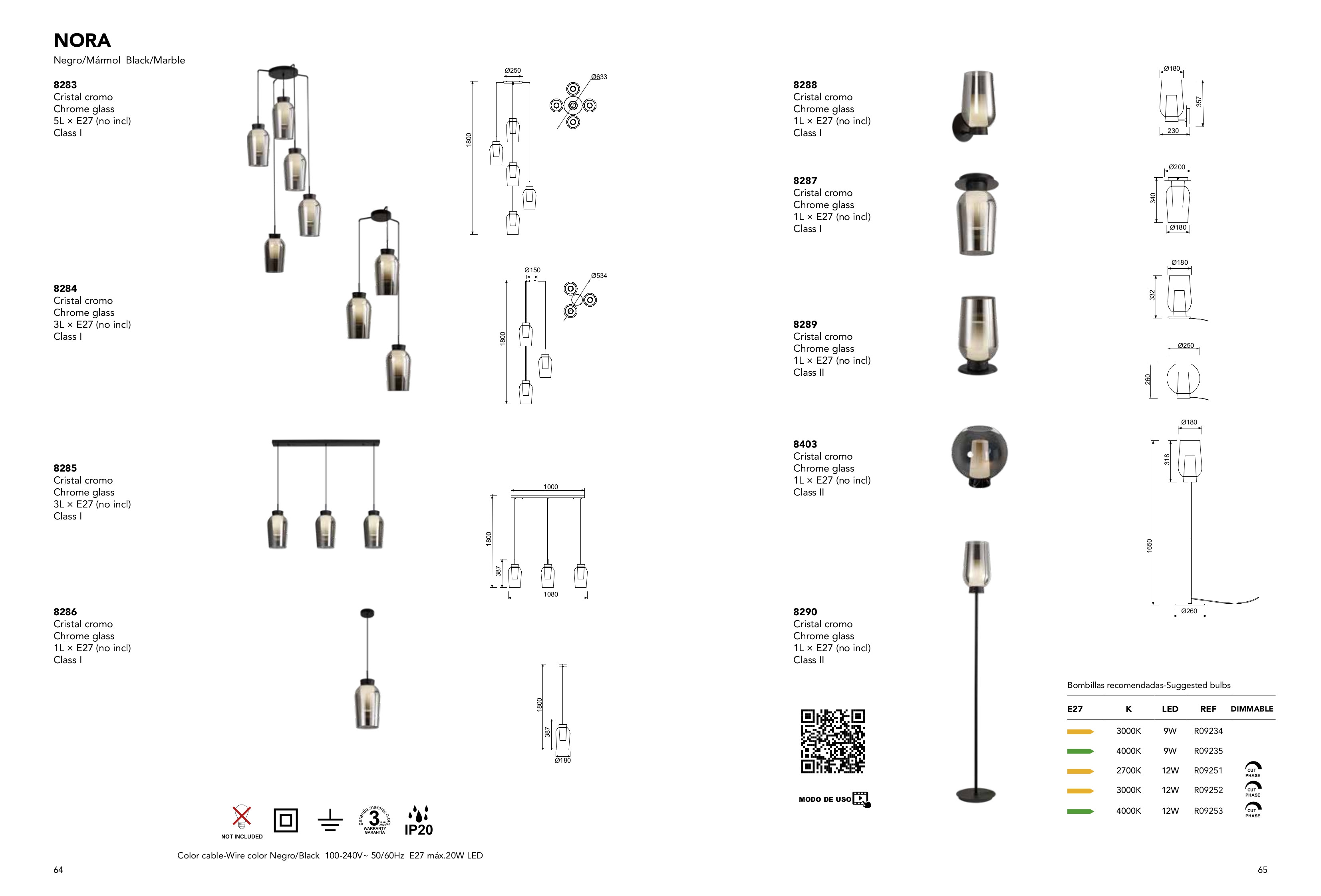 Стилът и естетиката на обстановката ще се обогатят благодарение, както на цялостната визия и дизайн на осветителното тяло, така и на вложените в изработката му, качествени материали, като: метал в цвят черен мрамор, хромирано стъкло, черен захранващ кабел.